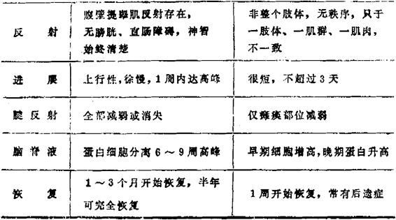 释义 | 急性感染性多发性神经炎 【病因】 多认为与病毒感染有关,有的认为是由各种病因通过细胞机制发生的迟发型过敏反应。 【临床表现】 病前数天内常有上呼吸道感染或腹泻史,过累、受寒等常为发病诱因,发病时可有发热,神智一直清晰,早期可有感觉异常,如麻木、疼痛、四肢肌肉迅速瘫痪,肌张力减低,腱反射减退,瘫痪多以肢体远端为重,病变发展较迅速,为上升性、对称性、进行性,有时颅神经可同时损害,其中以面神经损害为多见,也可有吞咽无力、呛咳等,严重病儿常有肋间肌瘫痪,有时可合并心肌损害,此为危重征象。早期常有多汗,唾液分泌增多,气管分泌物增多,及一过性膀胱功能障碍等。脑脊液检查,有的病儿有细胞蛋白分离现象,即蛋白增加,细胞数不增多,病后第二周阳性率最高,并可维持较长时间,病情一般在2~3周左右渐趋稳定,1~2个月后渐惭恢复。少数病员可有复发。 【诊断与鉴别诊断】 应与脊髓灰质炎鉴别。 感染性多发性神经炎与脊髓灰质炎鉴别表 【预防】 目前无有效预防方法。 【治疗】 一、一般疗法:充足营养,注意水电平衡。 二、中药治疗:本病属痿症范畴,可分为肺热重灼,肺虚湿困,气虚血瘀3型。 肺热重灼型可用银翘散:双花15克、连翘9克、薄荷6克、荆芥穗4.5克、生石膏15克、淡竹叶9克、桔梗6克、牛蒡子9克、大青叶15克、淮山药9克,水煎服,每日1剂。 肺虚湿困型可用参苓白术散:台参12克、白术9克、云苓12克、白扁豆12克、淮山药9克、薏仁9克、砂仁6克、莲子肉9克、炒桔梗8克、炙甘草9克。 气虚血瘀型可用补阳还五汤加减:生黄芪12克、归尾6克、赤芍9克、炙地龙9克、川乌3克、桃仁6克、鸡血藤9克、路路通9克、全蝎3个、蜈蚣1条、炙甘草6克。 恢复期可用虎潜丸:黄柏9克、龟板9克、知母6克、熟地9克、陈皮9克、白芍9克、锁阳6克、虎骨9克、干姜6克。 急性期可用附子3克、赤芍9克、甘草3克,水煎服。有较好化痰作用。 三、新针疗法:早期可针灸、电兴奋,恢复期可进行体育锻炼、按摩等。 四、激素疗法:用氢化可的松或地塞米松静脉滴注,10~14天稳定后,改为口服强的松。 五、营养神经促进代谢作用的药物:维生素B1、B2、B6、B12、C、三磷酸腺甙、辅酶A、细胞色素C、烟酸、烟酰胺等。 六、控制继发感染。 七、对症治疗: (一)如有吞咽困难,可用鼻饲,要防止食物误入气管而造成呼吸道梗阻。 (二)呼吸道分泌物多,有梗阻情况者,可行气管切开、体位引流;肋间肌瘫痪者,可用人工呼吸器;呼吸中枢衰竭者,可用呼吸中枢兴奋药。此外,注意及时输氧,有呼吸受累时,可静脉给新斯的明。 (三)注意心肌炎,有心力衰竭者可给西地兰、毒毛旋花子素K等。 |
