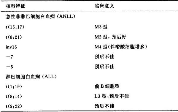 释义 | 急性白血病 【释义】: 白血病(acute leukemia)是造血系统的恶性肿瘤性疾病,其特点为有分化成熟障碍的造血细胞异常增生,替代正常造血组织、进入外周血循环,并可浸润各组织器官。 在因肿瘤死亡的各国成人中,白血病排名第7~9位不等;但在小儿及35岁以下人群中,排名首位。从病程看,我国人群中急性白血病患者多于慢性患者;急性白血病从分类来看,儿童以急淋为主,成人以急非淋为主。白血病病因尚未明确,但部分患者和以下因素有关: (1)病毒 Epstein-Barr病毒和Burkitt淋巴瘤/白血病、人T淋巴细胞病毒Ⅰ型(HTLV-I)和成人T淋巴细胞白血病/淋巴瘤密切有关。其余各型白血病和病毒关系尚无确实证据。但动物模型中,可通过一些特定病毒的感染诱发白血病。 (2)电离辐射 对核爆地区生存者的研究证明,其发生白血病的危险显着升高,尤以慢性粒细胞白血病为多。资料表明,小剂量多次电离辐射,同样有利于白血病的发生。 (3)化学制剂 苯、白消安(马利兰)、马法兰、乙双吗啉促发白血病较为肯定,尤以粒细胞白血病为主。 (4)遗传因素 多见于青少年起病者。Down's syndrome,Fanconi syn-drome,Bloom syndrome的患儿并发急性白血病发生率比正常人群显着增高。文献中尚有个别孪生或白血病家系的报道。 对于大多数患者而言,其白血病病因很可能是多因素的,既有外界诱发因素,更有患者体内免疫监视和造血调控异常等内在问题。但无论致病机制如何,白血病的发生直接与造血干细胞2次或更多次的突变、一个或多个克隆的增殖密切相关。在部分类型白血病,特异的染色体易位和一定的细胞形态和临床表现密切相关(表6-4)。 表6-4 急性白血病染色体特征性改变的临床意义 但白血病克隆在遗传上有不稳定倾向,表现在疾病进展过程中出现核型和表型的演进,并具有异质性的特点。 【诊断】: 1.临床表现 患者起病多急骤,所有症状、体征主要和正常造血功能受抑制和白血病细胞浸润有关。 (1)发热 最常见,各种热型均可见,亦可伴畏寒、盗汗、消瘦、衰竭。低热者常为代谢增快所致。高热(39℃以上者)多由感染所致。部位不一,以口腔、呼吸道、肛周、皮肤等处多见,部分可有菌血症、败血症。致病菌多为混合性,革兰阴、阳性细菌或真菌均有可能。 (2)贫血 原因有三:①红系生成受抑制;②外周红细胞寿命缩短;③出血。 (3)出血 多以皮肤黏膜为主。表现为齿衄,鼻出血,皮肤瘀点、瘀斑。特殊类型如ANLL-M3型患者亦可有血肿、颅内出血等。出血原因是多方面的:①血管壁及周围组织受白血病细胞侵犯;②血小板生成减少,这是最主要原因;③循环抗凝物质增多;④纤溶亢进;⑤继发于DIC,主要见于M3型患者。 (4)浸润 症状随浸润部位不同而改变。急淋患者脾、淋巴结肿大多见,T淋巴细胞型还可伴纵隔淋巴结肿大。齿龈肿胀常提示单核细胞型白血病;骨、关节酸痛多见于儿童。成人中以急淋多见。局限性胸骨压痛并不一定出现,但一旦出现,常有诊断意义。儿童可表现为游走性关节锐痛,需注意鉴别诊断;眶周浸润可致眼球凸出,称绿色瘤;脑膜及中枢侵犯早期出现症状者比例不高。但需引起重视。表现和受累部位有关,头痛、恶心、呕吐、颈项强直等多见。男性患者亦可有生殖系统侵犯。 (5)其他 高尿酸血症导致肾功能损害、髓外病灶所致胸腔积液、腹泻等亦有报道或为首发症状。 2.辅助检查 (1)血象 除贫血,血小板减少外,白细胞计数视类型和病程可有高低不一。除少数病例,分类计数多可见原始及幼稚细胞。 (2)骨髓象 增生程度多为明显至极度活跃,原始+幼稚细胞比例大于30%。余细胞成分不同程度受抑。分型主要依靠骨髓细胞涂片。 (3)细胞化学染色详见表6-5。 表6-5 三种常见急性白血病细胞化学染色反应 (4)免疫学检查 多用单克隆抗体检测,对急性白血病分类有很大帮助。运用流式细胞仪分析结果更为可靠。 (5)染色体检查 如前表6-4所列,染色体检查已成为白血病鉴别诊断、分型及预后判断的重要检测指标的一部分。 (6)其他 骨髓活检、纤维染色对预后有一定意义。出、凝血检查对M3型有重要临床价值。分子生物学标记如PML-RAR,AML1-ETO等对明确诊断和随访残余白血病有重要价值,惟当前所能鉴别的类型仅局限于个别亚型。 所有临床症状、体征均缺乏特异性。骨髓细胞学检查是确诊白血病的主要依据。及时、完整的检查一般可较容易地得出诊断结论,并和其他疾病明确鉴别。 【治疗】: 急性白血病作为一种进展迅速、肿瘤负荷量很大的全身性疾病,要求使用全身化疗作为最基本的手段。化疗或其他诱导治疗的目的首先在于迅速降低患者的肿瘤负荷,消除所致症状,恢复正常造血,即诱导缓解。其次,从长期来看,维持缓解后的无病生存,争取临床治愈是治疗的首要目标,包括巩固、强化、维持等阶段。而其中,也包括了自身或异基因的骨髓或外周血干细胞移植。 1.急非淋 在排除M3亚型后,各型治疗并无太大差别。当前诱导治疗前的准备主要有两大部分构成:①在尚未开始正规治疗前获得尽可能完整的临床资料,这对今后治疗方案的制订意义重大。②在此期间,尽可能降低肿瘤负荷量,纠正可能干扰诱导治疗的各种异常,包括各种方法,如小剂量抗代谢药物羟基脲、阿糖胞苷的使用。白细胞分离,作为一种物理方法,结合抗代谢药物,可有效减轻肿瘤负荷量,对初发或诱导前白细胞计数明显增高者