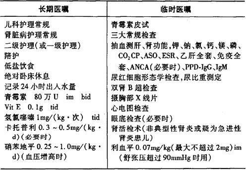 说明:1.水肿严重者可临时酌情用呋塞米1~2mg/(kg·次),静脉注射,若水肿不明显且血压正常者可停用利尿剂。