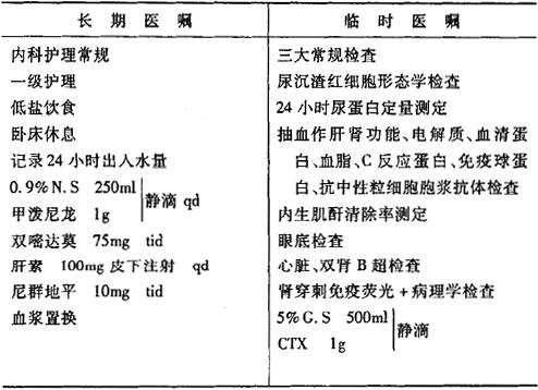 释义 | 急进性肾小球肾炎 说明:(1)使用甲泼松龙3~4天为一疗程,间歇3~4天,共使用2~3疗程,然后改为强的松1mg/(kg·d)。 (2)血浆置换,每日或隔日一次,每次置换2L,一般需置换10次以上。 (3)环磷酰胺每月1次,总量6~9g。 (4)激素、细胞毒药物、抗凝及抑制血小板聚集药物联合应用称四联疗法,但在疾病明显慢性化以后应停止使用。 (5)合并感染或感染使病情加重时须抗感染治疗。 (6)合并尿毒症时须透析治疗或作肾脏移植。 |