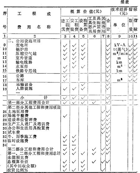 释义 | 总概算书 (一)建设概(预)算的组成 总概算书是确定某一建设项目的全部建设费用的计划文件。总概算书文件一般应包括:总概算目录表、编制说明、总概算书及其所包括的单位工程概算书、综合概算书、其他工程费用概算。建设概(预)算由单个到综合,局部到总体逐个编制,层层汇总而成,如概(预)算书编制系统概念图(见图17-10)。 图17-10 概(预)算书编制系统概念图 (二)编制说明 (1)工程概况。主要介绍生产品种、规模、公用工程及厂外工程的主要情况等,即建设规模和建设范围。 (2)编制依据。主要依据设计文件、定额标准、各种价格及费用指标等。 (3)编制方法。主要说明编制概算采用的是概算定额还是概算指标等。 (4)投资分析。主要分析各项投资的比例及与同类工程比较,分析投资高低原因,说明该设计是否经济合理。 (5)主要设备和材料数量。主要是机械设备、电气设备及建筑主要材料(钢材、木材、水泥等)的数量。 (6)其他有关问题。说明在编制过程中存在的其他有关问题。 (三)总概算书 总概算书的全部费用按其投资构成可分为: (1)建筑工程费用:包括各种厂房、仓库、住宅、公用设施工程、生活、福利、文化、教育及服务设施工程和矿并、铁路、公路、码头、烟囱、水塔等建(构)筑物工程;各种管道、电力和电信导线敷设工程、设备基础、各种工业窑炉砌筑、金属结构等工程;水利工程、场地准备、厂区整理、植树绿化等费用。 (2)设备安装工程费用:包括各种需要安装的机械设备的装配、装置工程,与设备相连的工作台、梯子等的装饰工程,附属于被安装设备的管线敷设工程,被安装设备绝缘、保温和油漆等工程和测定设备安装工程质量对单个设备进行试车的费用等。 (3)设备购置费用:包括一切需要安装和不需要安装的设备购置费。 (4)工具、器具及生产用具购置费用。 (5)其他费用。 (四)总概算书的项目的划分(如表17-170) 表17-170 总概算表 总概算书中的项目一般分为二个部分: 第一部分:工程费用项目 ①主要生产项目和辅助生产项目;②公用设施工程项目;③生活、福利、文化、教育及服务项目。 第二部分:其他工程和费用项目 ①征用土地及迁移补偿费;②建设单位管理费;③科学研究试验费;④生产职工培训费;⑤办公和生活用具购置费;⑥联合试车费;⑦勘察设计费;⑧供电补贴;⑨施工机构迁移费;⑩矿山巷道维修费;⑾国外设计与技术资料费,出国联络费、外国技术人员生活和接待费、进口设备和材料检验费、出国人员培训费、专利和技术保密费、进口成套项目延期付款利息等费用;⑿冬雨季施工费;⒀临时设施费(包括大小临时设备) ⑨、⑿、⒀三项,如在编制单位工程概预算已计算了,就不再重列计算。 在第一、二部分项目费用合计之后,应列未能预见工程和费用。 在总概算的末尾还应列可以回收金额。 |