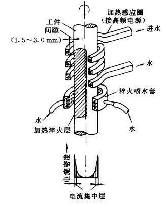 释义 | 感应加热表面淬火 15.5.3.1 什么是感应加热表面淬火 感应加热表面淬火是利用感应电流通过工件产生的热效应,使工件局部受热,然后快速冷却,获得马氏体组织的工艺. 15.5.3.2 感应加热表面淬火原理 感应加热表面淬火原理如图15-20所示.当交流电通过铜制感应器时,在其周围产生交变磁常于是工件中就产生感应电流(即涡流)这种感应电流有“集肤效应”,即在工件截面上的分布不均匀,靠近表面的电流密度最大,而中心几乎为零.因此,工件表面可迅速被加热至800~1000℃,而心部温度仍近于室温.被加热的深度由电流透入深度决定,而电流透入深度又与电流频率有反比关系,即电流频率越高,电流透入深度越小.因此,通过频率选择,可以得到不同的淬硬层深度. 图15-20 感应加热表面淬火示意图 15.5.3.3 感应加热表面淬火的分类、工艺及应用 1.分类 根据电流频率的不同,可将感应加热表面淬火分为以下三类: (1)高频感应加热(70~1000kHz); (2)中频感应加热(0.5~10kHz); (3)工频感应加热(50Hz). 常用感应加热设备有三种,见表15-22.其中应用最多的是高频感应加热淬火法.其透入层深度δ与电流频率f的关系为: 式中 δ——高频感应电流透入深度,mm; μ——被加热工件的磁导率,H/m; ρ——被加热工件材料的电阻率,Ω·m; f——高频电流频率,Hz. 表15-22 常用感应加热设备 2.工艺及应用 感应加热表面淬火工艺过程是: 钢件:锻造→退火(正火)→机加工→调质(正火)→机加工→表面淬火→低温回火→磨削; 铸铁件:铸造→正火→高温回火→机加工→表面淬火→低温回火→磨削. 这里说明几点: (1)电流频率的选择.一般中小型工件加热,如小模数齿轮、中小型圆柱零件用高频加热;直径较大的轴类和大中等模数的齿轮用中频加热;大直径工件(如轧辊)用工频加热. (2)冷却.感应加热后,可采用喷射冷却法或浸液冷却法进行冷却.常用淬火介质有水、聚乙烯醇水溶液、乳化液和油. (3)回火.淬火后,一般只进行低温(180~200℃)回火,目的是降低残余应力和脆性,而又不致降低硬度.在生产中也常采用自回火,即在工件冷却到200℃左右时停止喷水,利用工件内部的余热来达到回火的目的. (4)选材.为保证工件淬火后表面硬又耐磨,而心部有良好韧性,一般选材为中碳钢及中碳合金钢,也可是高碳工具钢、低合金工具钢及球墨铸铁件.其中,碳的质量分数为0.35%~0.50%的钢,淬火效果最好. (5)淬硬层深度的确定.工件淬硬层与选材有关,还与淬硬层深度有关.一般来讲,淬硬层深度增加,强度提高,但脆性也增大因此,只要求耐磨的工件淬硬层深度可浅些,而要求耐疲劳的工件淬硬层可深一点一般而言,当淬硬层深度为半径的1/10左右时,可得到强度、耐疲劳性和韧性的最好配合. 15.5.3.4 感应加热表面淬火优缺点 优点是: (1)淬火组织(马氏体)细微,力学性能好,疲劳强度及冲击韧性好,硬度也较普通淬火高HRC2~3.此外,工件表面不易氧化和脱碳,变形校淬硬层深度可控制,工艺质量稳定. (2)淬火操作易于实现机械化、自动化. (3)主要适用于大批量形状简单工件. 缺点是:设备昂贵、复杂,维修及调整要求具有一定水平的技术人员. |