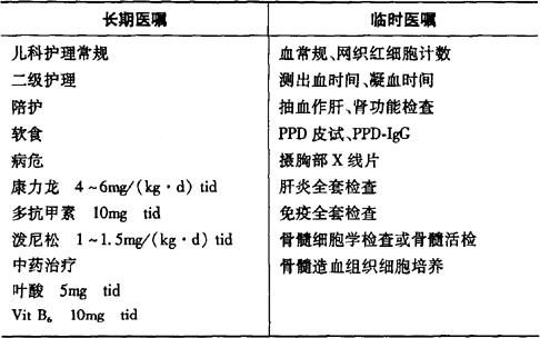 释义 | 慢性再生障碍性贫血 说明:1.康力龙治疗要3~6个月才见效,可用其他雄性激素代替,如丙酸睾酮1~2mg/(kg·d)肌内注射或达那唑100~200mg,每日2次。 2.加用中药治疗时,如出血明显,川芎等活血化瘀药,剂量应减半。 3.泼尼松的疗效有争议,但其能减轻康力龙的副作用。疗程1个月。 4.康力龙疗程6个月以上,有肝损害应定期复查肝功能。 5.重度贫血可输浓缩红细胞,出血严重者可输血小板。 6.重型慢性再生障碍性贫血采用与急性再生障碍性贫血相同的治疗方案。 |