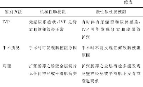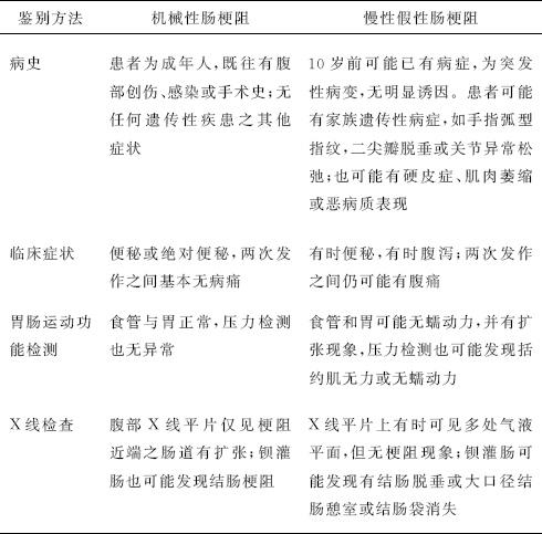 机械肠梗阻与慢性假性肠梗阻之鉴别(表3-1)。