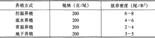 释义 | 成体的养殖 国内在成体养殖方面已取得了成功经验和技术,其主要养殖方式有室外养殖、地下室、人防工程养殖及我们研究开发的工厂化控温养殖。概括起来主要分为静水养殖和流水养殖。 天然娃娃鱼是以自然环境中的饵料作为营养基础,因此,生长缓慢,一般需要5龄才能达到成体。人工养殖娃娃鱼,是创造其良好生态环境及提供营养丰富的饲料,一般只需要2~3龄即可达到成体阶段。 娃娃鱼由于营养价值和药用价值高,其经济开发价值巨大。因此,娃娃鱼增养殖技术将是今后一段时期内我国水产行业重点竞争焦点,娃娃鱼也将是今后重点开发品种。 (一)养殖方式 娃娃鱼养殖方式各地可根据情况选择,以下介绍控温养殖技术——娃娃鱼工厂化立体养殖方法,这项技术已取得了发明专利权。 (二)成体放养 1.放养前的准备 (1)成体池的维修与消毒 主要是检查进出水管、拦栅网有无破损,检查过滤池、过滤装置及控温机器有无故障,并进行维修,清查成体池,看是否有损坏,及时维修,然后对成体池进行消毒,待药性消失后再行放养。 (2)成体消毒 成体消毒主要防止水霉病和细菌性疾病,消毒方法及药物和幼体相同。放养时要使成体养殖池水温与幼体池水温相同。 (3)放养前检查 要对成体的数量和规格进行检查,以便按成体个体大、中、小分级分池饲养。这样,同一种规格的成体在摄食能力和摄食强度上基本相同,生长速率基本一致,这就能避免大小混养造成相互残食。 2.放养密度 娃娃鱼成体放养密度要根据各地的养殖方式、技术水平、养殖条件而定。现将成体不同养殖方式的放养标准归纳于表5-2。 表5-2 成体各种养殖方式的放养标准 |