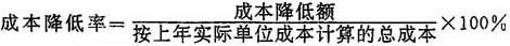释义 | 成本降低率 成本降低额与按上年实际单位成本计算的总成本的比率。计算公式为: 例如,某企业有以下资料: ××企业 19××年 (单位:元) 上表中,降低额=150,000—137500=12500(元) |