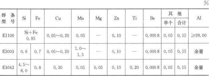 焊条型号的编制方法如下:字母“E”表示焊条,E后面的数字表示焊芯用铝及铝合金牌号。