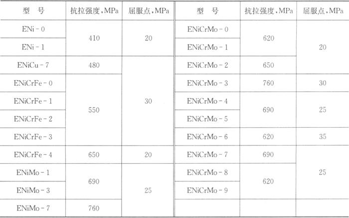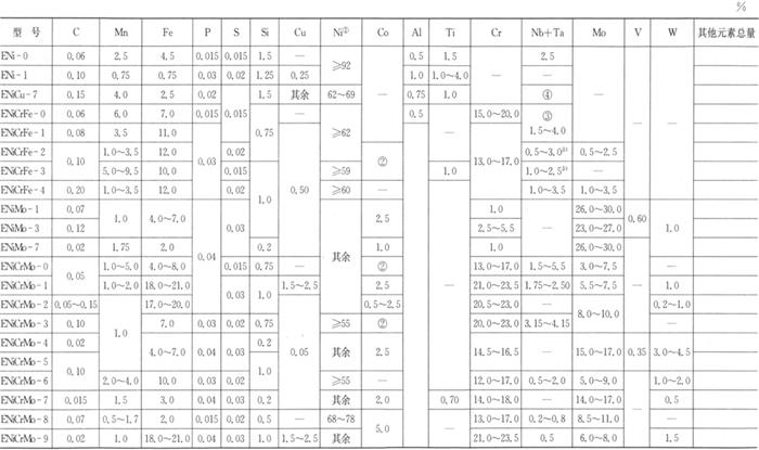 释义 | 我国镍及镍合金焊条标准概述 我国国家标准GB/T 13814-1992规定了镍及镍合金焊条的型号、技术要求、试验方法等内容。焊条型号根据熔敷金属化学成分和药皮类型划分,其表示方法如下: 型号示例 注:药皮类型中,3表示焊条药皮为钛钙型;15表示焊条药皮为低氢钠;16表示焊条药皮为低氢钾。 焊条熔敷金属化学成分应符合表5.2-1的规定,焊条熔敷金属的力学性能应符合表5.2-2的规定,除熔敷金属的力学性能试验外,还应对焊接接头进行弯曲试验。对于直径2.0mm的焊条应做两个横向正弯试验,对于其他直径的焊条,应做三个横向侧弯试验。试样厚10mm,弯曲直径40mm,每个试样弯曲表面的裂纹条数和单个裂纹长度应不超过表5.2-3的规定,但长度小于0.4mm的裂纹及试样棱角上的裂纹不计。 表5.2-1 熔敷金属化学成分(GB/T 13814-1992) 注:1.在对本表中规定的化学元素进行分析时,如果发现存在其他元素,则应进一步分析,分析结果不应超过其他元素总量。 2.表中所列单个值,除有其他规定,则均为最大值。①含镍量包括附带的钴。②钴——有要求时最大为0.12。③钼——有要求时最大为0.30。④铌——有要求时最大为2.5。 表5.2-2 熔敷金属力学性能要求(GB/T 13814-1992) 表5.2-3 裂纹条数和裂纹长度的允许值(GB/T 13814-1992) 表5.2-4列出我国常用镍和镍合金焊条牌号与GB/T 13814型号的对照。 表5.2-4 我国常用镍和镍合金焊条牌号与GB/T 13814型号对照 |