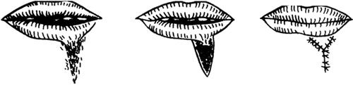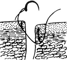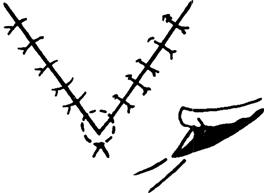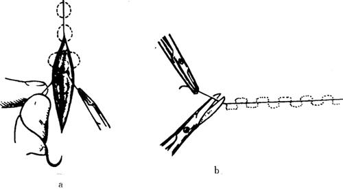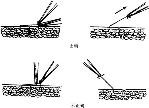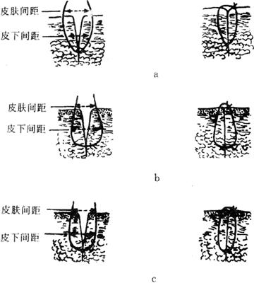释义 | 手术操作基本技术 【切口】 美容外科手术的皮肤切口应在隐蔽的部位;不能损伤重要的血管神经;切口尽量与生理性皮纹一致(图9-1)。沿皮纹做切口,因切口与皮肤的弹力纤维平行,可使缝合时张力小,创口愈合后瘢痕不明显,从而达到美容的目的,避免由于切断皮肤弹力纤维导致缝合时张力增加,从而发生过多的瘢痕增生。在皮肤松软部位,若一时不能辨认皮纹方向时,术者可用拇、食指在皮面不同的方向撮起皮肤,如皮肤面上出现平行的细纹理时,即可按此方向切开;如必须与皮肤纹理垂直做切口时,则应改变方向,使呈“S”形,或呈“Z”形,以减少术后瘢痕挛缩。 图9-1 切口张力与皮纹方向的关系 a.与皮纹不同方向的切口线 b.切开后显示不同张力 通常的外科手术切口刀刃与皮肤表面成90°角垂直切开。而美容外科手术做皮肤切开时,常将刀刃稍稍斜向内侧,使缝合缘轻度隆起,这样可使创缘平整,瘢痕小,达到美观的目的。 另外,在头发部、眉毛处做切口时,刀刃应与毛发方向平行,以免损伤毛囊,引起毛发脱落。 【剥离】 正确的剥离,既可减少对组织的创伤,又可使解剖层次清楚。在剥离时不仅要求动作轻柔,而且要按层次进行。剥离分锐性分离和钝性分离两种。锐性分离是用手术刀或手术剪在直视下做准确而细致的割剪,此法对组织损伤少;钝性分离是用刀柄、血管钳或手指等分离组织,可在非直视下进行,它对组织损伤较多。 美容外科手术,如除皱术、切除挛缩瘢痕,常需广泛剥离皮瓣。剥离时,层次要清楚、正确,注意保护神经和血管,一般多采用锐性剥离。方法是将刀刃与组织面成90°角,边剥离边推进组织,切断瘢痕或粘连。 剥离范围应根据具体需要而定。即便是小范围的皮肤缺损,张力很小时,仍需剥离皮肤创缘0.5cm左右,以利于创缘对合,减少术后瘢痕。若皮肤缺损大,强行拉拢缝合,往往会造成缝合部皮肤坏死或出现缝线切割性瘢痕,甚至会造成局部器官变形。 剥离的深度,应根据不同部位而定。面部手术尽量在面神经浅面、真皮下脂肪层中进行剥离,既可减少出血,又不至于损伤面神经。头部手术应在帽状腱膜下、骨膜浅层进行。四肢和躯干部手术最好在深筋膜浅层进行。 【止血】 止血是保证手术野清楚、避免血肿感染、保证组织良好愈合的重要步骤。大多数的美容外科手术是在头面部进行,而头面部血运丰富,出血较多,因此在手术过程中,止血必须迅速而准确、减少出血。若止血不彻底,易形成血肿。大的血肿可增加创口张力,甚至使创缘出现坏死。血肿还会使组织愈合时间延长,增加感染危险。另外,由于血肿机化,纤维组织增生,会使瘢痕增大。常用的止血方法有以下几种: (1)止血钳钳夹止血。动、静脉被切断后,应立即用纱布或手指端按住出血点,然后用血管钳可靠地夹住断端,用3-0号或5-0号细线结扎止血。 (2)压迫止血。在小血管出血或创面渗血时,可用纱布、温盐水湿纱布、含副肾上腺素盐水纱布等压迫创面,能达到很好的止血效果。 (3)局部使用止血剂。骨面出血,可用骨蜡涂压于出血处;死腔渗血时,可用明胶海绵压入。 (4)电凝止血。任何美容手术,均可采用电刀或双极电凝凝固止血,该法可大大缩短手术时间,且不影响组织愈合。电凝止血的不足之处有:对较大的血管无效;会产生电火花,不能与易爆性气体麻醉剂并用;对组织有一定损伤,电流越大,损伤越大。 (5)放置引流条后加压包扎。对于创面大、位置较深、估计术后可能有渗血者,可放置引流条,行加压包扎。引流条一般在24~48h内拔除。加压包扎后可定时检查局部血运情况。 【缝合】 缝合是使手术分离开的组织或切除后的剩余组织重新就位,以期达到创口一期愈合的目的。美容外科手术要求缝合时使创缘按组织层次严密而正确地对合,张力适度,选用最优的缝合方法和组织反应小而细的线缝合;使缝合伤口的瘢痕尽可能地细、短和隐蔽,以期达到美学的要求。 1.缝合的基本要求 (1)要正确对位,接触良好,各层次要分层缝合。 (2)应尽量消灭死腔,以免创口感染。 (3)应在无张力或最小张力下缝合,以免创口裂开和愈合后瘢痕过粗。 (4)两侧切缘如果一侧是固定的,一侧是游离的,除个别情况外,原则上应先缝游离侧,后缝固定侧。 (5)皮肤缝合时,除沿凹陷皱纹的切口可做内卷缝合使与皱纹一致外,一般要防止创缘内卷及过度外翻,以免导致感染和愈合后瘢痕明显。在缝合时要注意以下两点: ①缝合应包括皮肤全层,进针时,针尖应与皮肤垂直,方可达到一定的缝合深度。 ②皮肤创缘内卷是由于皮肤切口两侧进针间距大于皮下间距的结果;皮肤创缘过度外翻则是皮肤切口两侧进针间距小于皮下间距的结果。因此,正确的缝合应是皮肤切口两侧进针间距等于或略小于皮下间距,这样,即可形成正确对位愈合(图9-2)。 图9-2 皮肤间距与皮下间距对皮肤缝合后的影响 a.皮肤间距大于皮下间距——创缘内卷 b.皮肤间距小于皮下间距——创缘过度外翻 c.皮肤间距等于或略小于皮下间距——正确对位 (6)美容外科皮肤缝合,其边距约2~3mm,针距约3~5mm,这样可取得较好的外形。 (7)缝合时线结的松紧度应适宜。过紧可压迫创缘,影响血运,导致边缘坏死,或因缝线的切割作用而在拆线后遗留明显的缝线压迹;过松则创缘不能紧密接触或发生错位,导致创缘渗血与愈合后瘢痕增粗。 (8)在功能部位,如口角旁、下眼睑等处,