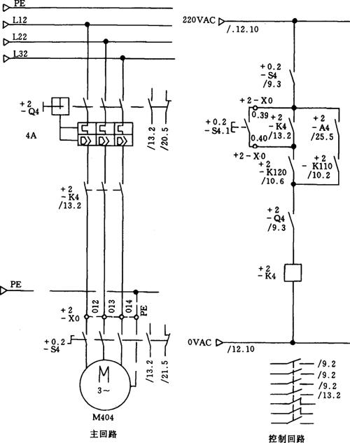 释义 | 打叶复烤生产线自动化控制 (一)控制系统的基本功能 (1)逻辑程序控制及连锁功能。 (2)手动/自动转换及本地操作功能。 (3)过程控制及在线检测功能。 (4)工艺流程和控制参数显示功能。 (5)安全保护、停机及自动报警功能。 (6)自诊断功能。 (7)管理功能。 (二)电控模式 1.集中分段控制 根据工艺设备要求,控制设备一般为相对集中,进行分段控制。段内控制柜可选用联体结构,各段控制功能相对独立,自成体系;段与段之间信号联络和信号连锁;在设备附近安装有本地隔离开关和启停按钮;大功率电动机采用本地柜降压启动方式。 2.控制系统分段 (1)打叶前控制段。 (2)打叶控制段。 (3)烟片复烤控制段。 (4)烟梗复烤控制段。 (5)预压打包控制段。 (6)除尘系统控制段。 (三)各控制段基本功能 1.打叶前控制段 该段以程序控制为主,保证进入打叶机烟叶水分、温度和流量基本恒定。但真空回潮工序不包含在打叶前控制段内,只利用随机配有的控制装置。与打叶前控制段也无信号联络和信号连锁。 2.打叶控制段 (1)该段以程序控制为主,可在控制柜面板上选择手动/自动操作方式;电动机手动/自动可从本地开关处选择;段内的程序控制,由可编程控制器按预定程序执行。 (2)7.5kW以上电动机采用Y/△启动或专设本地控制柜;由于该段大功率电动机多,必要时可在电源柜中和本地柜中增设功率因素补偿装置。 (3)当打叶线上某处出现故障,可由控制连锁信号自动反馈给打前控制段,使该段停止运行;控制柜中设过压、欠压、过流保护电路及报警指示,本地开关上配置电动机本地停机按钮,以保证设备及人员安全。 (4)画面显示可采用计算机屏幕显示和模拟板显示两种方式。计算机屏幕显示工艺流程画面,工艺参数及设备工作状态,以实现集中监控。模拟板显示可按工艺流程相对应的模拟图型,显示设备的运行状态及出现故障的部位。 3.烟片复烤控制段 (1)该段程序控制与打叶线控制方式相同。工艺参数(即温度、湿度等)可采用单回路调节器组成控制单元,对干燥段、冷却段和回潮段的温度进行自动调节。 (2)气流温度可由温度传感器、温度变送器,调节器,电动(或气动)阀组成控制单元完成。温度传感器宜选用精度高,灵敏度高、输出信号大的铂热电阻和相配套的变送器和调节器(如国产化的DDZ-Ⅲ型电动单元组合仪表)。 (3)烤后叶片含水率可由复烤机出料端的水分仪(或传感器)采集叶片含水率参数,与设计值进行比较、采用闭环控制。 4.烟梗复烤段(略) 5.预压打包控制段 该段可采用可编程控制器为主的控制方式进行控制,可编程控制器接收安装在设备上的接近开关、光电开关、行程开关及电器元件触点开关信号、按预定程序完成喂料至捆扎各工序的加工任务。PC柜上的模拟板可显示各道工序的工作状态。 6.除尘控制段 大功率除尘风机,宜采用降压起动。 (四)电控柜特点及电路结构 打叶复烤生产线分段集中控制的电源柜、执行柜与可编程控制器柜可采用联体结构,柜内应设通风散热和照明装置,电子器件在前面板上卡装,控制线及动力线分两个通道,本地柜宜设在被控设备附近。 1.电源控制柜 电源控制柜为执行柜和可编程控制柜提供交直流电源。柜内安装空气开关、隔离变压器、互感器、直流稳压电源及电流、电压指示仪表,应具有自动欠压保护、供气压力控制、电压电流指示、手动停机及声光报警功能。一般的电源柜电原理图见图10-5-1所示。 图10-5-1 电源柜电路原理图 ①Q100为三相电源电路总开关,为执行柜提供380VAC电源,具有欠压保护功能。②Q101、Q102、Q103及T100为执行柜、可编程控制器提供220VAC、24VAC电源,S200~S203为安装在各段的急刹单按钮开关。③S205、S206为检测电压电流值的转换开关。 2.执行控制柜 执行控制柜由自动空气开关、交流接触器、中间继电器、延时继电器等低压电器组成,接收可编程控制器的输出信号,完成各种控制,同时将动作状态信号,输入给可编程控制器,以完成在线的逻辑控制。内部电路分主回路和控制回路。一般的执行柜内部电路见图10-5-2所示。 图10-5-2 执行柜内部电路 主回路由空气开关Q4、交流接触器K4触点、本地开关触点S4、电动机M404组成。 控制回路由交流接触器K4、手动启动按钮4.1、自动起动信号PC触点A4、手动/自动转换开关K110、k120以及Q4触点组成。具有手动/自动起动功能。 3.可编程控制(PC)控制柜 PC控制柜可由可编程控制器、中间继电器、模拟显示板组成,按控制要求进行编程、设置工作状态,完成系统逻辑控制和工艺参数的开环或闭环控制。 4.本地控制柜 为7.5kW以上电动机启动而设计的本地柜,在打叶段、除尘段用量较大,本地柜电源由车间配电柜提供,放置在受控电动机附近。控制电路可采用Y-△降压启动方式,对大容量的电动机控制,宜增设功率因素补偿装置。 |