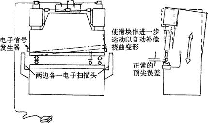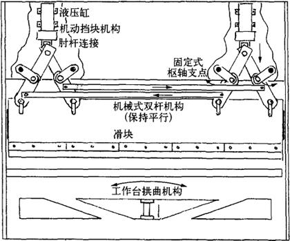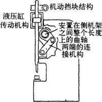 释义 | 折边机 利用折边机可以弯折各种几何形状的金属箱、柜、盒壳、翼板、肋板、矩形管、U形梁和屏板等薄板制件,以提高结构的强度和刚度。它广泛用于钣金加工。 常用的折边设备按驱动方式分为三类,即机械折弯机、液压折弯机和气动折弯机。机械折弯机又可分为机械式折板机和机械式板料折弯机(或板料折弯压力机)。前者简称为折板机,后者简称为压弯机。前者结构比较简单,适用于简单小型零件的生产;后者结构比较复杂,适用于复杂大中型零件的生产。 1.折板机 按传动方式,折板机有手动和机动两种,一般都使用机动折板机。 机动折板机由床架、传动丝杆、上台面、下台面和折板等组成。 折板机的工作部分是固定在台面和折板上的镶条,其安装情况如图5-8所示。上台面和折板镶条一般是成套的,具有不同角度和弯曲半径,可根据需要选用。 图5-8 折板机上镶条的安装情况 1-上台面;2-上台面镶条;3-折板镶条;4-下台面镶条;5-下台面;6-折板 折板机的操作过程如下: ①升起上台面,将选好的镶条装在台面和折板上。若所弯制零件的弯曲半径比现在镶条稍大时,可加特种垫板,如图5-9所示。这样在工作时,垫板要垫在坯料的下边。 图5-9 镶条的使用情况 1-上台面镶条;2-特种垫板;3-上台面;4-挡板;5-下台面镶条;6-下台面;7-折板;8-折板镶条 ②下降上台面,翻起折板至90°角,调整折板与台面的间隙,以适应材料厚度和弯曲半径。为避免折弯时擦伤坯料,间隙应稍大些。 ③退回折板,升起上台面,放入的坯料靠紧后挡板。若弯折较窄的零件,或不用挡板时,坯料的弯折线应对准上台面镶条的外缘线。 ④下降上台面,压住坯料。 ⑤翻转折板,弯折至要求的角度。为得到尺寸准确的零件,应考虑回弹,必须控制好弯折角度。 ⑥退回折板,升起上台面,取下零件。 2.机械式板料折弯机 机械式板料折弯机采用曲柄连杆滑块机构,将电动机的旋转运动变为滑块的往复运动。只要传动系统和工作机构具有足够的刚度和精度,就能加工出具有相当高的尺寸重复精度。它的每分钟行程次数较高,维护简单,但体积庞大,制造成本较高,多半用于中小件折弯。 机械式板料折弯机的结构类似于普通开式双柱双点压力机。图5-10是一般的传动系统。工作时,拖板的起落和上下位置的调节,是两个独立的传动系统。拖板位置的调整,是由电动机21,通过齿轮22、20、19、23带动轴25转动,装在轴25上的蜗杆24使连杆螺丝2旋入连杆3内,通过电动机换向,可上下调节拖板位置。拖板的起落是靠电动机13通过皮带轮16、齿轮10、8带动传动轴7转动,通过齿轮6和5带动曲轴4转动,使连杆3带动拖板起落,进行折弯工作。 图5-10 机械式板料折弯机传动系统 1-拖板;2-连杆螺丝;3-连杆;4-曲轴;5、6、8、10-齿轮;7-传动轴;9-止动器;11、12、14、15-变速箱齿轮;13-电动机;16-皮带轮;17-主轴;18-齿轮变速齿条;19、20、22、23-齿轮;21-电动机;24-蜗杆;25-轴;26-工作台 机械式板料折弯机的操作过程如下: ①将拖板降到最低位置,调整拖板的最低点到工作台面的垂直距离(即闭合高度)比上下两弯曲模总高度大20~50mm。 ②升起拖板,安装上模和下模。一般先把下模放在工作台上,然后下降拖板再装上模。在安装上模时,从拖板固模槽的一端,一边活动一边往里推至拖板的中间位置,使板料折弯机受力均衡,并用螺钉紧固。 ③开动拖板的调整机构,使上模进入下模槽口,并移动下模,使上模顶点的中心线对正下模口的中心线,固定下模。 ④升起拖板,按弯曲尺寸调整挡板,如图5-11所示。 图5-11 挡板位置的确定 式中 A——下模侧面至挡板距离(mm); B——下模槽口宽度(mm); C——下模侧面至下模槽口边缘的距离(mm); L——弯曲线至坯料边缘线的距离(mm)。 工作时,一般标出A值,经过试弯作适当调整后确定下来。 ⑤按要求调整弯曲角度。根据弯曲角度,选用对应的上、下模,然后只需调整上模进入下模的深度,就很容易达到要求。 3.液压板料折板机 液压板料折板机采用油泵驱动,由于液压系统能在整个行程中对板料施加压力,能在过载时自动卸荷保护,自动化程度高,使用方便,因此液压折板机是一种常用的折弯设备。一般它有两个竖直油缸推动滑块的运动。为防止滑块在运动过程中产生过大的偏斜,设有同步控制系统。 液压折板机有四种结构形式: (1)液压下传动式 这种结构的折板机,最适合加工金属箱体。它的液压系统一般都安装在底座内(图5-12),这使得它在实施“包围式折弯”,即加工只有一个接头的箱体时不致受到液压装置的阻碍。 图5-12 液压下传动式折板机 这种下传动式折板机上横梁是固定不动的,工作台往上升而完成闭合行程,工件随着工作台一起上升。液压装置在应用单面作用油缸的底座中。工作台依靠自身的重量完成返回行程。因而,这种折板机由于缺少可脱卸的上模,一般不能用来实施各种冲切加工。 这类折板机擅长于加工小规格的材料,与同等规格的其他折板机相比,操作方便、灵巧。 (2)液压上传动式折板机——机械挡块结构 液压上传动式折板机要比下传动式折板机应用范围广得多,从15~2000t压力规格的上传动式折板机都具有精确的控制机构。上传动式折板机采用了能操纵闭合和开启行程的双向作用缸,因而它具备了脱模功能,适用于在额定压力范围内的冲切加工。 在折弯各种角度时,机械挡块结构能精确地控制上模插入下模槽的深度,以得到