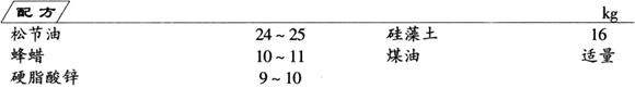 将硅藻土研磨成细粉状,并过325目筛。将蜂蜡、硬脂酸锌、硅藻土粉和煤油一起加热熔化,并加入松节油,搅拌,混合均匀,即成抛光上蜡剂。