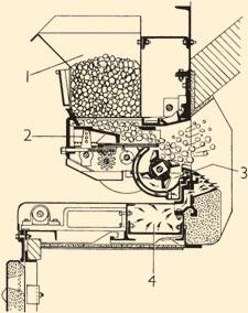 释义 | 抛煤机 代替人力向燃煤锅炉加煤的机械。 借机械力量或兼利用空气(或蒸汽)的辅助,将煤粒不断抛入炉中,均匀分布在炉排上燃烧。细粒煤则与空气混合在炉膛内悬浮燃烧。 常为中小容量的锅炉所采用。 抛煤机示意图 1.加煤斗 2.往复式送煤器 3.旋转式抛煤器 4.喷散细粒的空气管道 |