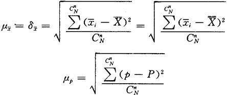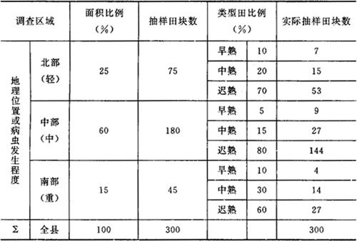一、概念与应用范围 (一)抽样调查的几个基本概念 1.抽样调查 是一种非全面调查。所谓抽样调查,是指按随机的原则,在研究对象的全部单位或全及总体中抽取一定数量的单位进行观察,并将观察得出的抽样指标,用以推断全及总体指标的一种组织形式。由于这种形式是在概率论与数理统计学的基础上建立起来的,既包含搜集统计资料的方法,又包含对全部研究对象的数量特征进行估计推断的方法,达到对总体的认识。因此,抽样调查在统计调查和统计分析中,是一种很有用处的调查方法。 2.全及总体和抽样总体 从调查统计的范围看,全及总体简称总体,是指将所要研究的调查单位的全体。总体单位数通常用符号N表示。抽样总体简称样本,是指从总体中被抽取出来的,用抽样调查方法所要直接观察的全部单位。样本的单位数通常用符号n表示。样本是抽样调查的特有概念。从理论上讲,样本总是小于总体的,是总体的缩影。因此,它是推断总体的依据。然而,总体单位N很多,有时多得无法计算;而抽样单位n则远比N为小,可小到N的几十、几百乃至几千、几万分之一。抽取样本的多少,主要取决于研究对象的观察性质和研究的具体任务。从总体中抽取的单位可以构成一个抽样总体,也可以构成一系列的抽样总体;而且每一个抽样总体可以计算相应的综合指标。 3.总体指标与样本指标 总体指标是指以总体各单位标志值计算的综合指标。样本指标是指以样本总体各单位标志值计算的综合指标。总体指标是由总体全部标志总量所决定的,也是唯一确定的量,总体的总平均数就是一例。样本指标则不同,它是随着样本单位的不同而参加样本指标计算的,标志总量亦就不同,它仍然是一个随机变量,样本平均数就是一例。在数理统计中,样本指标称为统计量,它是总体随机变量的函数。从理论上说,样本统计量可以有多种多样的,但实际上常用的只有抽样平均数和抽样成数。 总体平均数,是指总体的平均数,一般用符号 总体成数简称成数,是指总体的成数,通常用符号P表示。 样本成数简称频率,是指样本的成数,通常用符号p表示。 (二)抽样调查的应用范围 抽样调查的应用范围与抽样调查的目的及调查对象性状有着密切联系。应用范围主要有如下几点。 1.对不可以用或难于应用全面调查的客观事物进行调查研究,以取得总体数量的特征 如对玉米螟、甘蔗螟虫等钻蛀性害虫密度的调查,不可能将所调查的玉米、甘蔗都砍下剥查,而只能采用抽样调查的组织形式。又如对某乡进行水稻三化螟的发生量及发生程度的定量和定性调查,同样地不可能逐田块甚至逐株检查,而且也没有这个必要。只能采用抽样调查,按随机原则抽取一定数量的样点村、样点田调查,获得有关指标,以满足人们调查统计的需要。关于定量和定性的计算方法,待第七章详述。 2.对全面调查或普查资料进行修正和补充 在全面调查或普查过程中,往往由于面广、工作量大而造成人为误差。例如人口普查的净差率(遗漏率-重复率)。为了减少误差,提高可靠程度或验证调查结果、积累有关统计指标,在开展全面调查或普查之后而进行的抽样调查。如某地区植保站组织一次全地区性植物检疫对象——柑桔黄龙病的普查。为了验证、修正和补充普查资料,确定发生范围、发生危害程度等指标。普查结束,首先对各县普查资料进行粗略地比较,结合该病传入本地区各县的历史资料以及所影响普查质量的有关情况进行分类,按随机原则,应用类型抽样形式确定样点县、样点乡,进行抽样调查,然后计算净差率,即可获得上述有关统计指标,完成对普查资料的验证、修正和补充的任务。 二、抽样误差 (一)抽样误差的概念 抽样误差是指抽样指标与总体指标之间所产生差数的简称。误差是不可避免的。因为样本指标是根据抽样单位的标志值计算出来的,而总体中的其他没有被抽到的单位标志值则没有被计算在内,而且通常以抽样指标来代替总体指标。 (二)抽样误差的计算公式 1.抽样误差的计算原理 前面已介绍了抽样误差是抽样指标与总体指标之间的差数。这些差数一般又是以抽样平均数或成数来推算总体平均数或成数的。所以,抽样误差主要是抽样平均数与总体平均数之间的差数( 式中 μp——抽样成数的平均误差; N——总体单位数; n——样本单位数。 例如:总体为1、2、3、4、5个数字组成,按随机不重复抽样方式抽取三个数字组成一系列样本。样本平均数就有10个| 表3-1 用上式计算结果: 所以,此例抽样平均数的平均误差(或抽样平均数的标准差)为0.58。 2.影响抽样误差大小的主要因素 数理统计的标准差,是反映平均数代表程度的尺度;用抽样方法来推算总体所产生的平均误差,是反映总体指标代表程度的一种尺度。因此,抽样误差愈小,样本的代表性愈高。为了减少一系列抽样误差,提高样本代表性,从抽样方案设计到抽取样本的过程中,必须注意如下影响抽样误差大小的几个主要决定性因素:(1)抽样单位的多少。样本单位数抽取愈多,则抽样误差愈小;反之,样本单位数抽取愈少,则抽样误差愈大。(2)总体标志变动程度的大小。一个样本单位标志是全及总体各单位标志中之一。总体各单位标志的变动程度愈小,抽样误差就愈小;反之,总体各单位标志的变动程度愈大,抽样误差就愈大。由此可见,抽样误差的大小,与抽取单位数多少成反