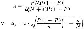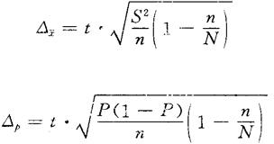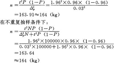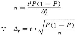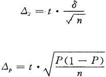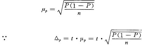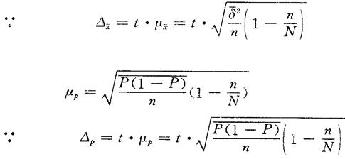 式中 若结合抽样平均误差的计算公式,允许误差的计算公式还可以表示如下。 重复抽样条件下: 不重复抽样条件下 若以样本标准差S和样本成数P作为总体标准差δ和总体成数P的样本估计值,则有: 重复抽样条件下: 不重复抽样条件下: 一般情况下,允许误差的置信度是随允许误差的变化而变化的。允许误差愈大,允许误差的置信度就愈大,反之就愈小。 (二)抽样代表性检查 抽样的目的在于通过抽样指标推算全及总体指标。然而,要获得较为理想的而且能客观地反映全及总体指标,保证抽样结果能够获得代表性的资料,往往需要进行抽样代表性的预先检查。就是说,根据已掌握的资料,推算出全及总体的某些综合指标,然后和抽样总体均同一指标相比较。 所谓已掌握的资料,就是利用某一次(含过去)调查结果的平均值。如果过去缺乏上述有关资料,作一般性的粗略地检查和判断。 在上述比较过程中,通常将抽样总体的指标和已掌握的全及总体同一指标的比率用百分数形式表示。用这个比率来说明抽样代表性的程度,一般不超过5%。若对比结果不超过5%,表示这个比率落在95%-105%之间,一般可以认为抽样代表性是令人满意的。如果超过这个范围,就需要重新抽选,再次抽选仍未得到满意的结果,不再重新抽选,而是在原来抽样基数的基础上,增加抽样单位,直至达到满意为止。例如,某县在全县20个乡中确定样点乡5个。根据调查结果,样点乡的水稻稻飞虱加权平均百丛禾有虫分别为500头、650头、700头、730头、760头。被抽中的样点乡平均百丛禾虫量为: (500+650+700+730+760)÷5=668(头) 据全县20个乡抽样调查,全县平均百丛禾虫量为701头。 上述两个平均百丛虫量的比率为:701÷668=1.0494或104.94%。由此可见,其比率没有超过5%。这说明了被抽中的5个乡是具有代表性的。 (三)抽样资料的推算 抽样资料的推算方法,是指根据抽取的样本资料(指标)来估计总体指标(如平均数、标准差、比率等)的方法。通常采用点估计和区间估计两种。 1.点估计也称定值估计 是指以实际抽样调查资料得到的指标 点估计的方法比较简单,只有在对被估计的对象要求严格的情况下才有使用价值。因为这种做法没有考虑抽样误差,亦没有说明有多大的准确度和估计把握程度。 2.区间估计 此法是根据样本指标 一是根据样本指标和抽样误差计算总体指标所在的可能范围。其计算公式为: 平均指标: 成数指标:p-△p≤P≤p+△p 由此可见,这种估计方法有一个上限和一个下限,并由它们组成一个区间。上式平均数的下限为 二是区间估计所表示的为一个可能的范围,而不是一个绝对可靠的范围。因为区间估计是涉及到抽样误差,而实际上抽样指标和总体指标的绝对值是不可能求得的。用抽样指标准确无误地推断总体指标可能性是极小的。所以,进行区间估计的意义在于不仅给出总体指标存在的范围,而且给出总体指标在这个范围内的置信度或概率把握程度。由于△x=t·μx,△p=t·μp,所以区间估计的一般公式可以表示为: p-t·μp≤P≤p+t·μp 例如,在上例中,棉籽平均含棉铃虫率为10%,抽样误差为2%,若要求估计把握程度为68.27%,则查概率表t为1,那么△p=1×2%=2%,于是该批棉籽平均含虫率的区间为: 10%-1×2%≤P≤10%+1×2% 即: 8%≤P≤12% 因此,该批1000kg棉籽平均含虫率将在8%-12%之间,把握程度为68.27%,亦就是说1000kg棉籽的含虫率包括在这个区间的可靠性是68.27%。 三是扩大或缩小抽样误差的范围可以提高或会降低推断的把握性。 譬如,在上例中,若将估计的误差范围扩大1倍,所以△p=2×2%=4%。 则: 10%-4%≤P≤10%+4% 即: 6%≤P≤14% 因此,该批的1000kg棉籽平均含虫率将在6%-14%之间,这时由于t=2(由于t=误差范围/平均抽样误差=4%÷2%=2),查概率表得F(t)为95.45%,即把握程度可达到95.45%。 若将估计的误差范围缩小1倍,所以△p=0.5×2%=1%,则: 10%-1%≤P≤10%+1% 即: 9%≤P≤11% 因此,该批的1000kg棉籽平均含虫率将在9%-11%之间,这时由于t=0.5,查概率表得F(t)为38.29%,即把握程度低,降到38.29%。 |