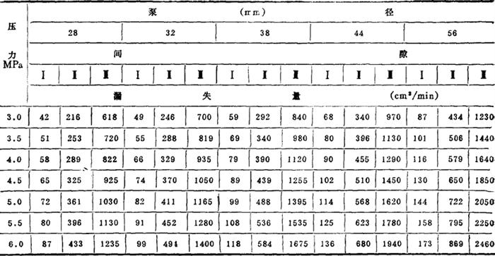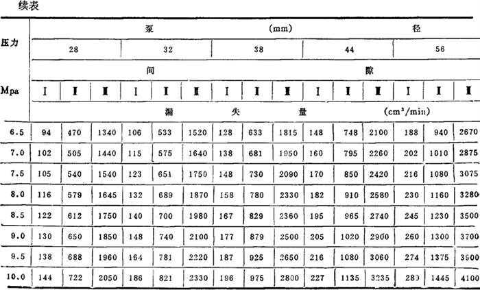 表3-3-82 抽油机各型泵煤油试压时各级配合间隙允许漏失量