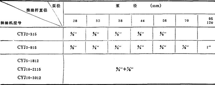 (二)抽油机各型泵煤油试压时各级配合间隙允许漏失量及深井泵直径与抽油杆直径的配合关系