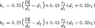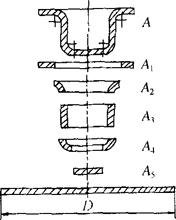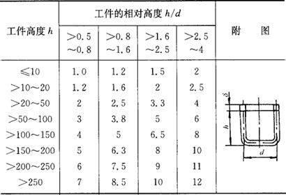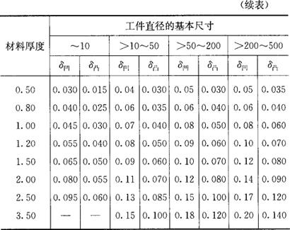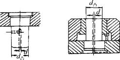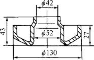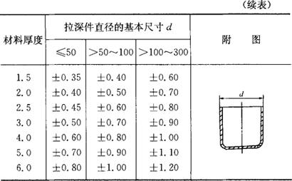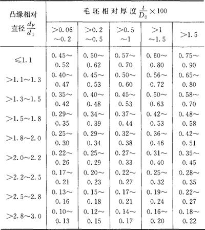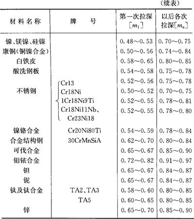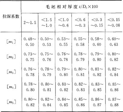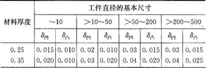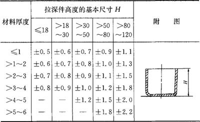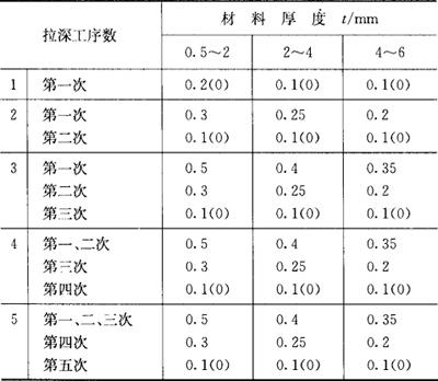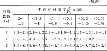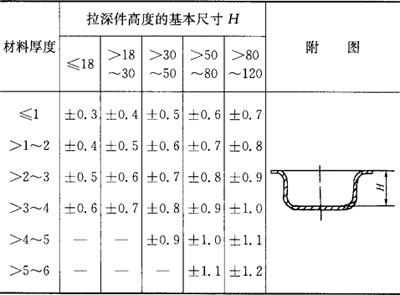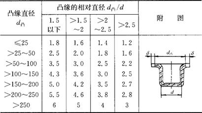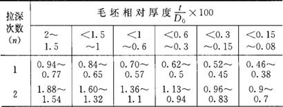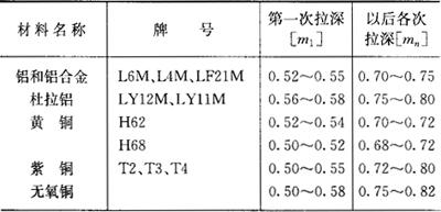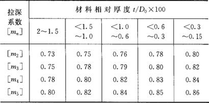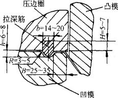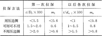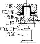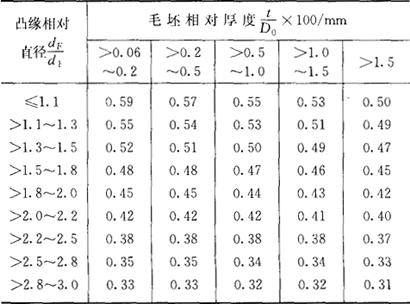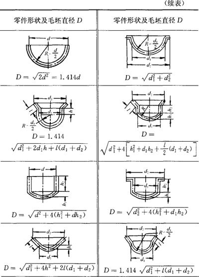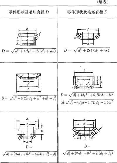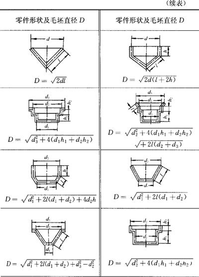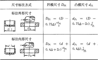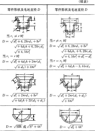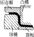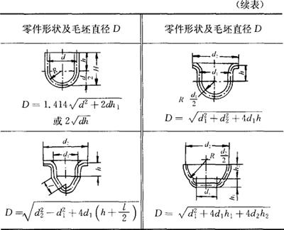 释义 | 拉深模设计 (一)拉深件的工艺性 1.拉深件的形状 ①拉深件的形状设计应尽量简单、对称。 ②过高或过深的空心零件需要多次冲压工序,所以应尽量减小零件高度。 ③在零件的平面部分,尤其是在距离边缘较远位置上的局部凹坑和突起的高度不宜过大。 ④应尽量避免曲面空心零件的尖底形状,尤其高度大时其工艺性更差。 在实际生产中,对冲压件的几何形状和尺寸作某些修改,既能使其性能不变,又可以使冲压加工得到很大的简化。如图1.2-41所示的汽车消声器后盖,在保证使用要求的前提下,对其形状作简化后,可以使冲压加工由八道工序减为两道工序,材料消耗也减少50%。 (a)改进前 (b)改进后 图1.2-41 消声器后盖的改进 2.拉深件的圆角半径(图1.2-42) (a)筒形件 (b)带凸缘拉深件 (c)矩形件 图1.2-42 拉深件的圆角半径 拉深件的圆角半径应尽量大些,以利于成型和减少拉深次数。 ①拉深件底与壁间的圆角半径rp1应满足rp1≥t,为使拉深工序顺利进行,一般应该使rp1≥(3~5)t。增加整形工序时,可取rp1≥(0.1~0.3)t。 ②拉深件凸缘与壁侧间的圆角半径rd2应满足rd2≥2t,为使拉深工序顺利进行,一般应使rd2≥(4~8)t。增加整形工序时,可取rd2≥(0.1~0.3)t。 ③带凸缘拉深件的直径应取Dp≥dp+10t,以便在拉深时,用压料板压紧不起皱。 ④矩形件四壁间的转角半径r3应满足r3≥3t。为了减少拉深次数,尽可能取rs≥0.2H,以便一次拉深成功。 3.拉深件的精度 拉深件的制造精度包括直径方向的精度和高度方向的精度。在一般情况下,拉深件的精度不应超过表1.2-56、表1.2-57和表1.2-58中所列的数值。 表1.2-56 拉深件直径的极限偏差 (mm) 注:拉深件外形要求取正偏差;内形要求取负偏差。 表1.2-57 圆筒拉深件高度的极限偏差 (mm) 注:本表为不切边情况所达到的数值。 表1.2-58 带凸缘拉深件高度的极限偏差 (mm) 注:本表为未经整形所达到的数值。 产品图上的尺寸应注明必须保证外部尺寸或是内腔尺寸,不能同时标注内外形尺寸。 (二)拉深件毛坯形状和尺寸的确定 (1)修边余量的确定 由于材料性能不同、模具间隙不均、板厚变化及定位不准等影响,使拉深件口部或凸缘周边不齐,必须进行修边。故在计算毛坯尺寸时应按加上修边余量后的零件尺寸进行展开计算。 修边余量的数值可查表1.2-59和表1.2-60。 表1.2-59 无凸缘圆筒形拉深件的修边余量δ (mm) 表1.2-60 有凸缘圆筒形拉深件的修边余量δ (mm) (2)毛坯尺寸的计算 在拉深工艺中,如忽略毛坯在拉深过程中厚度的变化,可以按拉深前后面积不变的原则进行毛坯尺寸的计算。 根据面积不变原则,毛坯直径按下式确定: 式中 A0——拉深件的表面积; A——拉深件分解成简单几何形状的表面积,可由表1.2-61的公式求出。 表1.2-61 简单几何形状的表面积A的计算公式 例如,如图1.2-43所示有凸缘的筒形拉深件的毛坯尺寸计算,可先将该零件分解成五个简单几何形状,并按表1.2-61所列公式求得A1、A2、A3、A4、A5,然后按上述公式求出毛坯直径D。 图1.2-43 筒形件毛坯尺寸的确定 对于常用的拉深件,可选用表1.2-62所列公式直接求得毛坯直径D。 表1.2-62 常用旋转体拉深件毛坯直径的计算公式 注:1.尺寸按工件材料厚度中心层尺寸计算。 2.对于厚度小于1mm的拉深件,可不按工件材料厚度中心层尺寸计算,而根据工件外壁尺寸计算。 3.对于部分未考虑工件圆角半径的计算公式,在计算有圆角半径的工件时计算结果要偏大,故此情形下,可不考虑或少考虑修边余量。 (三)拉深模的凸、凹模间隙 (1)不用压边圈拉深 c=(1~1.1)tmax(末次拉深用小值,中间拉深用大值) 式中 tmax——材料厚度的最大极限尺寸(mm)。 (2)用压边圈拉深 c=tmax+kt 式中 tmax——材料厚度的最大极限尺寸(mm); t——材料厚度的基本尺寸(mm); k——间隙系数,见表1.2-63。 表1.2-63 间隙系数k 注:1.表中数值适用于一般精度(未注公差尺寸的极限偏差)工件的拉深工作。 2.末道工序括弧内的数字,适用于较精密拉深件(IT11~13级)。 材料厚度公差小或工件精度要求较高的,应取较小的间隙,按表1.2-64选取。 表1.2-64 有压边圈拉深时单边间隙值 (mm) 注:1.t为材料厚度,取材料允许偏差的中间值。 2.当拉深精密工件时,最末一次拉深间隙取c=t。 (四)拉深件变形程度的计算 拉深件变形程度用拉深系数m表示: 式中 d——拉深后圆筒直径; D——拉深前毛坯直径。 (五)拉深模凸、凹模工作尺寸的计算 (1)拉深模工作尺寸计算(表1.2-65) 表1.2-65 拉深模工作尺寸的计算公式 注:D凸、d凸——凹模、凸模尺寸(mm); D、d——拉深件外形、内形的基本尺寸(mm); c——凸、凹模的单边间隙; δ凹、δ凸——凹模、凸模的制造公差(表1.2-66)。 表1.2-66 圆形拉深模凸、凹模的制造公差 (mm) 注:1.表列数值用于未精压的薄钢板。 2.如用精压钢板,则凸模及凹模的制造公差等于表列数值的20%~25%。 3.如用有色金属,则凸模及凹模的制造公差等于表列数值的50%。 (2)拉深凸模的排气孔尺寸(表1.2-67) 表1.2-67 拉深凸模排气孔尺寸 (mm) (3)拉深凸模与凹模的圆角半径 ①拉深凸模的圆角半径r凸。除最末一次拉深工序外,其他各拉深工序r凸按下式计算: r凸=(0.6~1)r凹 最后一次拉深工序中,r凸应与工件的圆角半径相等。如果工件要求的圆角半径很小,则在最后一次拉深工序以后,须进行整形。 ②拉深凹模的圆角半径r凹。可按经验公式确定: 式中 D——毛坯直径(mm); d——凹模内径(mm); t——材料厚