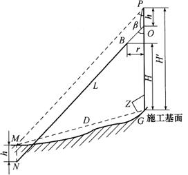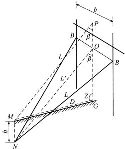 释义 | 拉线放样 拉线的种类很多,但放样方法基本相同。在杆塔设计图中,通常载有拉线与横担之间的水平角α、拉线的最大垂距H(即从杆上的拉线挂线点至施工基面的高度,又称拉高)、拉线与杆身的夹角β(一般为30°或45°)和拉盘埋深h。拉盘上有一根斜伸出土的带圈拉棒,从杆上扯下的拉线,绷紧拴在拉棒上。放样的目的就是竖杆之前,按照设计要求在地面上标定拉盘埋设的中心位置,保证所安的拉线与杆身的夹角符合设计标准,其误差在±1°以内。 1.单杆拉线的放样 如图15-7所示,设G为杆脚,以杆身中心线PG代表杆身;N为拉盘中心,M为N在地面的投影,即应标定的中心桩位;MN=h,即为拉盘埋深;B为拉线上部的挂线点,离开施工基面的高度为H;拉线NB延长与杆身中心相交于O,其交角为β。 图15-7 拉盘中心桩的标定 (1)放样数据的计算 现以直线连接M和G,令MG=D;过M作拉线NB的平行线与杆身中心线相交于P,组成△MPG。在此三角形中:∠MPG=β;∠MGP=Z(即天顶距);PG=H′。根据正弦定理可得 式中 H′——H′=H+rcotβ+h; r——挂线点B对杆身中心线的距离。可在杆塔设计上查到。 如果放样时经纬仪正好安置在挂线点的下面,则r=0,H′=H+h。 此外,由图15-7可知,NO=MP。通常以NO作为拉线的计算长度,并以L表示 拉线的实际长度还应抛去计算长度中包含的拉棒和挂线板等金具长度以及杆身半径的影响,根据具体情况考虑。 (2)放样步骤和方法 单杆拉线放样可使用经纬仪和全站仪进行现场标定,具体步骤如下: 1)在杆位桩上(或正对挂线点的下面)安置经纬仪或全站仪,量取仪高i(从施工基面至竖盘中心的高度)。 2)根据拉线方向与横担或路径中线的夹角α,用盘左位置标定望远镜方向。 3)在拉线方向估计大致接近拉盘位置的地方竖立标尺或棱镜,以中丝照准尺上读数等于仪器高i或棱镜高i处,读取天顶距Z;再直接获取竖盘中心至中丝读数处的斜距D′。 4)比较计算的D与D′是否相等;若不相等,则根据其差值大小前后移动标尺或棱镜,重新观测、计算,直至算出的D与量得的D′之差在允许范围(0.1m)为止,此时,立尺点即是拉盘中心桩的位置。 2.双杆V形拉线的放样 门形双杆的正V形拉线,如图15-8所示,其拉线平面与杆身平面的夹角也是β;拉盘一般埋设在路径中线上。测定拉盘中心桩时,仪器安置在杆位桩G上,测定方法与前面所述相同。但按上式求出的拉线“计算长度”NO=L′,不是正V形拉线两边应有的长度L,还必须考虑门形双杆两塔脚间的距离的影响。正V形拉线两边应有长度为 它的实际长度同样还应减去拉棒和挂线板等金具的长度。 图15-8 门形双杆正V形拉线 |