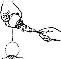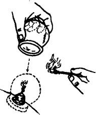 释义 | 拔火罐 借助火焰排除罐内部分空气,造成负压吸附在患畜穴位皮肤上来治疗疾病的一种方法。古代火罐多用牛角制作,故古称角法。负压可造成局部淤血,具有温经通络、活血逐痹的作用。适用于各种疼痛性病患,如肌肉风湿,关节风湿,胃肠冷痛,急、慢性消化不良,风寒感冒,寒性喘症,阴寒疡疽,跌打损伤以及吸毒、排脓等。 (一)术前准备 火罐1至数个,患畜妥善保定,术部剪毛,或在火罐吸着点上涂以不易燃烧的黏浆剂。 (二)操作方法 1.单独拔罐法 根据排气的方法,常用的方法有以下三种。 (1)闪火法 用镊子夹一块酒精棉点燃后,伸入罐内烧一下再迅速抽出,立即将罐扣在术部,火罐即可吸附在皮肤上(图1.7.1)。此法火不接触患畜,故无烧伤之弊。 图1.7.1 闪火法 (2)投火法 将纸片或酒精棉球点燃后,投入罐内,不等纸片烧完或火势正旺时,迅速将罐扣在术部(图1.7.2)。此法宜从侧面横扣,以免烧伤皮肤。 图1.7.2 投火法 (3)架火法 用一块不易燃烧而导热性很差的片状物(如姜片、木塞等),放在术部,上面放一小块酒精棉,点燃后,将罐口烧一下,迅速连火扣住(图1.7.3)。 图1.7.3 架火法 此外,还有贴棉法和滴酒法。 贴棉法 用酒精棉一块贴在罐内壁接近底部,点燃,待其烧到最旺时,扣在术部,即可吸附在皮肤上。 滴酒法 往罐内滴入少量的白酒或酒精,转动火罐,使酒或酒精均匀地布于罐的内壁,用火点燃后,速将罐扣在术部。 2.复合拔罐法 拔罐疗法可单独应用,也可与针刺等疗法配合应用。常用的有以下三种: (1)走罐法 先在施术部位或火罐口涂一层润滑油,将罐拔住后,向上下或左右推动,至皮肤充血为止(图1.7.4)。适用于面积较大的施术部位。 图1.7.4 走罐法 (2)针罐法 即白针疗法与拔罐法的结合。先在穴位上施白针,留针期间,以针为中心,再拔上火罐,可提高疗效(图1.7.5)。 图1.7.5 针罐法 (3)刺血拔罐法 即血针疗法与拔罐法的结合。先用三棱针或皮肤针在局部浅刺出血,再行拔罐,以加强刺血疗法的作用。可使局部的淤血消散,或将积脓、毒液吸出,常用于疮疡初期吸除瘘管脓液、毒蛇咬伤排毒。 3.留罐和起罐法 留罐时间的长短依病情和部位而定,一般为10~20min,病情较重、患部肌肤丰厚者可长,病情较轻、局部肌肤瘦薄者可短。起罐时,术者一手扶住罐体,使罐底稍倾斜,另一手下按罐口边缘的皮肤,使空气缓缓进入罐内,即可将罐起下(图1.7.6)。起罐后,若该部皮肤破损,可涂布消炎软膏,以防止感染。 图1.7.6 起罐法 (三)注意事项 1.局部有溃疡、水肿及大血管均不宜施术。患畜敏感,肌肤震颤不安,火罐不能吸牢者,应改用其他疗法。 2.根据不同部位选用大小合适的火罐,并检查罐口是否平整、罐壁是否牢固无损。凡罐口不平、罐壁有裂隙者皆不能使用。 3.拔罐动作要做到稳、准、轻、快。使用贴棉法时,罐壁内的棉花不应吸收过多的酒精;使用滴酒法时,勿使酒精流附于罐口,以免火随酒精流下而灼伤皮肤。起罐时,切不可硬拉或旋动,以免损伤皮肤。 4.术中若患病动物感到灼痛而不安时,应提早起罐。拔罐后局部出现紫绀色为正常现象,可自行消退。如留罐时间过长,皮肤会起水泡,泡小不需处理,大的可用针刺破,流出泡内液体,并涂以龙胆紫,以防感染。 |