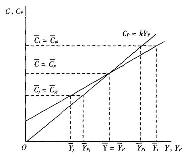 释义 | 持久收入假定 美国经济学家弗里德曼(M.Friedman)在《消费函数理论》(1957年)一书中提出的消费函数理论。该理论假定消费者的消费和他一生收入的现值成正比。因此,消费者一生中各期收入虽然是不稳定的,但其消费会是平稳的。持久收入假定的要点是: (1)消费者的实际收入或测得收入可以分为两部分:暂时收入(Transitory Income)和持久收入(Permanent Income)。与此对应,实际消费或测得消费也可分为两类:暂时消费(Transitory Consumption)和持久消费(Permanent Consumption)。所谓暂时收入是指非连续的、一次性的、带有偶然性的收入,持久收入是指消费者可以预期到的、连续性的收入。与此对应,暂时消费是指非经常性的、不在计划中的消费;持久消费是经常性的、计划中的、长期的消费。用Ci, (2)就整个社会而言,可以假设暂时收入和暂时消费的平均值等于零,因此,整个社会的平均收入和平均消费应等于持久收入和持久消费的平均值。即: E(Ct)=E(Yt)=0 E(C)=E(Cp) E(Y)=E(Yp) 或 假定收入分配基本上是正态的,可以把人们按照收入水平进行分组。在中位数组,即全组的平均收入和全部人口的平均收入相等的那一组,全组的平均暂时收入将等于0;在平均收入大于按全部人口平均的收入的各组,全组的平均暂时收入将大于0,即Yt>0,于是有Y>Yp。在平均收入小于按全部人口平均的收入的各组,全组的平均暂时收入将小于0,即Yt<0,于是有Y<Yp。因此就全社会来说,假定暂时收入的平均值等于0是合理的。 (3)持久收入和持久消费之间具有稳定的成固定比率的关系: Cp=kYp 其中比例常数k依赖于利率(i)、非人力财富与收入的比率(ω)及消费者对当前消费与积累财富的偏好(u)等因素,即:k=k(i,ω,u)。暂时消费(Ct)和暂时收入(Yt)之间,暂时消费(Ct)和持久收入(Yp)之间,持久消费(Cp)和暂时收入(Yt)之间都是不相关的,即它们之间的相关系数或协方差为零: ρ(Ct,Yt)=ρ(Ct,Yp) =ρ(Cp,Yt) =0 或cov(Ct,Yt)=cov(Ct,Yp) =cov(Cp,Yt) =0 而且暂时收入(Yt)和持久消费(Cp)之间,暂时收入(Yt)和持久收入(Yp)之间也是不相关的,它们的相关系数或协方差为零: ρ(Ct,Cp)=ρ(Yt,Yp)=0 cov(Ct,Cp)=cov(Yt,Yp)=0 持久消费与持久收入之间的固定关系说明,人们的现期消费主要不是同他的现期收入有关,而是与可以预期的未来总收入,即持久收入有关。一个人尽管目前的收入不多,但如果他愿意,他可以动用未来可以预期的收入。这就是说,消费者是从他可以支配和预期得到的全部收入的角度来安排现期消费的。 (4)对持久收入的估算问题。按照弗里德曼的说法,持久收入是不能直接观察和测量的,它必须从消费者的行为中推导出来,因此必须对持久收入进行适当的估算。从理论上说,持久收入是在现有财产水平与现在和未来可以赚到的预期收入为既定的条件下,消费者可以在较长时期中维持的稳定的收入流量。从现象上看,持久收入是指能保持三年以上的收入。有些时候容易区分收入是暂时性的还是持久性的,但多数时候这种区分是不容易做出的。为此,弗里德曼认为,一定时期的持久收入水平,是在过去的持久收入水平的基础之上形成的。例如,我们可以估计持久收入等于去年收入加上收入从去年到今年变化额的一定比例: Yp=Y-1+θ(Y-Y-1)=θY+(1-θ)Y-1 (0<θ<1) 其中θ为权数,Y-1是上一年的收入。可见持久收入为当前和过去收入的加权移动平均数。为了使持久收入的估算准确,还可以用以前更多年份的收入和现期收入来估算。这时,离现在越近的年份,加权数越大;离现在越久远的年份,加权数越小。其计算公式如下: Yp=θYt+θ(1-θ)Yt-1+θ(1-θ)2Yt-2+…+θ(1-θ)nYt-n 其中θ+θ(1-θ)+θ(1-θ)2+…+θ(1-θ)n=1 这种“后顾性”的预期方式属于适应性预期,无法包括影响一个人对未来收入看法的全部因素。因此,许多经济学家倾向于用理性预期方式估算持久收入。 (5)消费与消费支出的区分,导致了对储蓄含义的不同理解。弗里德曼区分了消费和消费支出的不同含义。消费是指家庭对购买来的消费品和劳务的实际消费量,消费支出是指购买消费品或劳务时的实际支出。就劳务和非耐用消费品而言,消费支出和实际消费可以看成几乎是同时发生的,它们之间没有实质性区别;但对于耐用消费品则不然,耐用消费品被购买后,是供长期消费用的,实际消费相当于耐用消费品的折旧额,消费支出与实际消费就不同了。持久消费和暂时消费实际上指消费而不是消费支出,这一点是持久消费和持久收入保持固定比例的前提条件。消费支出与消费的区别导致了对储蓄的不同于凯恩斯(J.M.Keynes)的绝对收入假定的理解: 凯恩斯的储蓄=收入-消费支出 弗里德曼的储蓄=收入-实际消费的价值(或耐用品的折旧额) 同时,弗里德曼认为,暂时收入如果被用作消费支出,那么用于购买耐用消费品的可能性最大。所以耐用消费品支出同暂时收入的关系要比它同持久收入的关系更为密切。这样,暂时消费与暂时收入之间的无关性命题就变得合理了,因为用于购买耐用消费品的暂时收入的大部分应归入储蓄部分。 根据持久收入假定可以导出横截面消费函数、短期消费函数和长期消费函数,以此来解释预算研究和时间序列研究所揭示的消费和收入之间的关系。就横截面情况而言,对每一个收入组i,都存在着 其中, 对于高收入组, 对于低收入组, 这说明在横截面分析中,随着收入的增加,平均消费倾向是下降的,因此可推出MPC<APC(见图1)。就