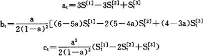 释义 | 指数平滑法 指数平滑法是移动平均法的改进。其基本思路是:在预测研究中越近期的数据越应受到重视,时间序列数据中各数据的重要程度由近及远呈指数规律递减,故对时间序列数据的平滑处理应采用加权平均的方法。 1.一次指数平滑值的计算 假设时间序列数据是一个无穷序列:yt,yt-1,yt-2,…,其加权平均值为 用βi=a(1-a)1(i=0,1,2,…)对时间序列数据加权,设加权平均值为 实际上,时间序列数据是有限的,一般情况下,∑βi<1,但只要这个时间序列足够长,上式可以作为有限时间序列数据加权平均值的一种近似。这个加权平均值就是我们所要求的一次指数平滑值。所以一次指数平滑值的计算公式为: 式中 yt——预测对象第t周期的实际数据; a——指数平滑系数。 a实际上是新旧数据权重的一个分配比例,a值越大,则新数据在 上式是一个递推公式,计算 如果实际时间序列数据的变动主要是随机变动而没有明显的周期变动和增长或下降趋势,我们可以直接用最近一个周期的一次指数平滑值 2.二次指数平滑值的计算与线性预测模型的建立 二次指数平滑是对一次指数平滑值序列再作一次指数平滑。二次指数平滑值的计算公式为: 式中 求二次指数平滑值也要先确定初始值,通常直接取 在二次指数平滑处理的基础上可建立线性预测模型 截距at与斜率bt的计算公式分别为: 二次指数平滑预测模型仅适用于预测对象的变动趋势呈线性的情况。如果预测对象的变动趋势是非线性的,则应在求三次指数平滑值的基础上建立非线性预测模型。 3.三次指数平滑值的计算与非线性预测模型的建立 三次指数平滑是对二次指数平滑值序列再作一次指数平滑。三次指数平滑值的计算公式为 式中】——第t周期的三次指数平滑值。 三次指数平滑的初始值可以直接取 在三次指数平滑处理的基础上可建立如下非线性预测模型: 模型系数a1、bt、ct的计算公式为 若实际时间序列数据的变动趋势呈线性, 则 平滑法(包括移动平均法和指数平滑法)适用于寻找实际数据序列的长期变动趋势,对数据序列的转折点缺乏鉴别能力。如果遇到数据序列出现转折点的情况,要靠预测者根据外部影响因素的分析判断对预测值进行修正。 |