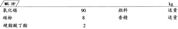 除香精外,将其余各组分混合,在球磨机上研磨,然后将香精均匀喷雾加入,即得指甲抛光剂。