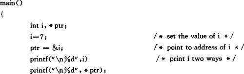 释义 | 指针和数组 指针变量存贮的是某一数据的地址,而不是数据本身。指针的使用常与数组元素的处理(赋值或修改)紧密相关。指针主要有三方面的用途: (1)指向数组的不同数据元素; (2)允许程序运行时创建新的变量(动态存贮分配); (3)访问某一数据结构的不同单元。 本节讨论指针的前两种用途,第三种用途将在3.3.7节讨论。 1.特殊指针操作符 有效地使用指针需要两个特殊的指地操作符:间址操作符(*)和取样地址操作符(&)。当要获取指针所指地址中存贮的数据时,需要使用间地址符(*),参看下述程序: 本程序声明i为整数,ptr为指向整数变量的指针。首先i被赋值为7。然后语句ptr=&i;使ptr指向i的地址。编译器变量i和ptr在存贮器中分配了存贮单元,运行时ptr被设置为整数变量i的起始地址,上述程序利用函数printf以下两种不同方式打印i的整数值--一是直接打印变量i的内容(printf(“\n%d,i),),一是利用址符(printf(“\n%d,*ptr),)。ptr前的操作符*指导编译器将存贮在地址ptr(即整数i的地址)中的值转送给printf函数。如果没有址符f*,则赋值给ptr的地址而不是其中的值将被函数printf显示。上例的最后两行说明了间址存贮,地址ptr中的数据改为11,这样相当于改变i的值。因为ptr指向i的地址。 数组本质上是由编译器分配的一块连续存贮区,其名称由声明语句给出。实际上,数组名不过是指向数组起始地址的一个固定指针。在C中,数组名既可作为指针用,也可用来引用数组元素(如a[2])。如果a声明为某种类型的数组,则*a和a[0]是等价的。而且*a(a+i)和a[i]也相同(只要i声明为整数),当然a[i]的意思更清楚一些,通过指针和增量操作符(++),可以快速地顺序访问数组的所有元素,例如,下述三个语句将数组a的前100个元素设置10: int*pointer; pointer=a; for(i=0;i<100;i++) *pointer++=10; 在很多计算机上,上述代码比单个语句for(*i=0;i<100;i++)a[i]=10执行得快。因为指针的后增量比数组下标的计算快。 2.指针与动态存贮分配 C语言有四个标准函数允许程序员动态地改变变量和数组的类型及大小。C程序能将同一存贮区用于不同目的,以免浪费存贮单元。另外,自动变量在函数(或大括号内的一段包含该变量声明的代码)开始运行时被自动从栈中分配存贮空间,在函数退出运行时(或右括号}处)又自动释放所占空间。只要合理使用自动变量和动态存贮分配函数,C程序占用的存贮空间几乎不多于程序每步运行所必须的存贮量。C的这一特点在多用户环境下尤其重要,因为这时用户申请的存贮量与占用存贮的时间之乘积将最终决定系统性能。在很多DSP应用中,合理运用动态存贮分配技术,可以用内部存贮量很小的廉价单片信号处理器完成复杂的函数运算,而不必采用带大容量片外存贮的昂贵处理器。 C用四个标准函数处理一个程序可获得的存贮空间(有时称为堆,以与栈相区别),其中malloc按字节分配存贮器,calloc按长度为任意个字节的项分配存贮器,free从堆中释放以前分配的项,reallo改变以前分配的项的大小。 当使用以下函数时,要分配存贮空间的项的大小也必须传送给这些函数,分配函数然后返回一个指向一块贮区的指针。该存贮区的大小应满足要求,为了使利用存贮分配的代码于移植,必须使用编译器的内部宏sizeof。例如: int*ptr ptr=1(int*)malloc(sizeof(int)); 以上代码为一个整数分配存贮,并用整数指针ptr指向所分配的存贮块的首址。在32位机上该存贮块占四个字节。在16位机上一般只占用两个字节。由于malloc(以及calloc和realloc)返回字符指针,必须用强制符(int*)将它强制为整数指针类型。类似地,用calloc和一个指针array,可以定义一个含25个元素的整数数组: int*array; array=(int*)calloc(25,sizeof(int)); 上述语言将分配一个有25个元素的数组,每个元素的大小等于回标机上整数的大小。通过另一指针,(改变指针pointer是不明智的,因为它保存着所分配存贮区的首址,)可以引用数组元素,或通过下标形式arrayp[[i](0<i<24)引用,由calloc分配存贮区的初始值为0。 函数malloc,calloc和free组成了一个简单的通用存贮分配包。free的参数(强制为字符指针)是指向以前由malloc或calloc分配的存贮块的指针,free释放相应存贮块的内容。malloc分配的空间运行时溢出或向free传送一随机数都会引起混乱。由于程序运行中释放的存贮空间总是交给操作系统管理,所以free没有返回值。 realloc改变以前分配的存贮块的大小并返回指向存贮块的指针。存贮器中原来的内容不变。realloc比malloc使用得少,因为通常数组的大小事先知道。但是,如果上例中分配的含25个元素的数组要扩展为100个元素,则须使用以下语句: array=(int*)realloc((char*)array,100*sizeof(int)); realloc与malloc类似,其参数为需分配的字节数。要特别注意下面两个语句与前面的reaHoc语句不等价: free((char*)array); array=(int*)calloc(100,sizeof(int); 这两个语句确实能将25个元素的数组改变为100个元素的数组,但却不能保持前25个元素的值不变。事实上,calloc将100个整数都初始化为o,而realloc将保持前25个整数值,剩余的75个数元素不作任何设置。 如果没有存贮空间可供分配。malloc,realloc和caHoc返回空指针(值为0)。当reallocf返回0时,原指针所指的存贮区也可能被破坏掉。 3.指针数组 C语言的任一数据类型或任一数组类型的指针都可以构成数组。指针数组对于访问大的矩阵非常有用。一个由10个指针组成的数组,其中每个指针指向20个整数,可以