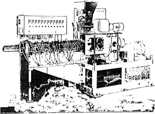 食品挤压机是由一根或两根基本上是阿基米德螺旋线形状的螺杆及相配合的筒体组成,它的外形如图3-6-1所示。