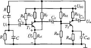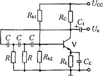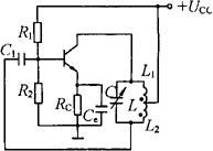 释义 | 振荡器 放大器在没有信号输入的情况下就有信号输出,这种现象称为自激振荡,简称自激。 放大器产生自激的相位条件是放大电路中存有正反馈,即反馈信号与输入信号同相。振幅条件是反馈到放大器输入端的电压幅值必须大于或等于放大器的原输入电压的幅值。 对于自激振荡的频率和幅值加以选择和控制就构成振荡器。振荡器由放大电路,反馈网络和选频网络三部分组成。只对某一特定频率(f0)的信号有所反映的电路就是选频网络。 根据输出波形的不同,振荡器可分为非正弦波振荡器和正弦波振荡器,正弦波振荡器又可分为RC振荡器和LC振荡器。 1.RC振荡器 RC振荡器有移相式、桥式、双T选频网络式等形式。 (1)移相式RC振荡器的频率计算 移相式RC振荡器是利用RC移相电路对某一频率产生180°的相移以满足振荡的相位条件,因此至少需要三级RC移相电路。RC移相电路具有移相、选频双重特性。 移相式RC振荡器具有电路简单、经济等优点。但选频作用差,振荡不够稳定,频率调节不方便。因此一般用于频率固定且稳定性要求不高的场合,其频率范围为数十千赫以下。 图3-24为移相式RC振荡器电路。 图3-24 移相式RC振荡器 移相式RC振荡器的频率计算为: 式中 f0——振荡频率(Hz); R——选频电阻(Ω); C——选频电容(F)。 (2)桥式RC振荡器的频率计算 桥式RC振荡器由RC串并联网络所组成的文氏电桥和两级共射放大器(同相放大器)组成。RC串并联网络不仅有选频作用,而且起正反馈作用。 为满足振幅平衡条件,桥式RC振荡器放大环节的电压放大倍数Au必须大于3。对于两级放大器,其Ku>3是很容易实现的。 桥式RC振荡器比移相式RC振荡器的频率和幅度稳定性高,波形失真小、频率调节方便,所以广泛应用于低频(音频,1Hz~1MHz)振荡器中。 桥式RC振荡器中引入电压串联负反馈的作用是减小波形失真和提高输出幅度的稳定性。通常采用具有负温度系数的热敏电阻作为反馈电阻RF,可取得较好的效果。 图3-25为桥式RC振荡器电路。 图3-25 桥式RC振荡器 桥式RC振荡器的频率计算为: 式中 f0——振荡频率(Hz); R——选频电阻(Ω); C——选频电容(F)。 [例3-10] 在图3-25所示的桥式RC振荡器的电路中,已知R=10kΩ,C=0.01μF,试求振荡器的振荡频率f0。 [解] 振荡频率 2.LC振荡器 LC振荡器有变压器耦合式、电感耦合式、电容耦合式等形式。 (1)变压器耦合式LC振荡器的频率计算 图3-26为变压器耦合式LC振荡器的电路。 (a)电路 (b)交流等效电路 图3—26 变压器耦合式振荡器 变压器耦合式LC振荡器以变压器作为反馈元件,L、C组成选频网络。L2为反馈绕组,其作用是把交流信号经C1反馈到放大器的输入端;Ce的作用是提供交流通路。 变压器耦合式LC振荡器的振荡频率为几十赫至几百千赫。其频率的计算为: 式中 f0——振荡频率(Hz); L——变压器一次侧电感(H); C——并联电容(F)。 (2)电感耦合式LC振荡器的频率计算 图3-27为电感耦合式LC振荡器的电路。 (a)电路 (b)交流等效电路 图3-27 电感耦合式振荡器 电感耦合式LC振荡器又叫哈脱莱振荡器,它以一只带抽头的电感线圈(自耦变压器)为反馈元件,直接从选频网络LC回路上引出一部分电压作为电路的正反馈。由图3-27(b)所示的交流等效电路得知,电感L有三个引出端点,所以电感耦合式IC振荡器又叫电感三点式振荡器。电感耦合式LC振荡器的振荡频率为几兆赫。其频率计算为: 式中 f0——振荡频率(Hz); L——选频网络LC回路的总电感,L=L1+L2+2M,M为L1与L2之间的互感(H); C——并联电容(F)。 (3)电容耦合式LC振荡器的频率计算 图3-28为电容耦合式LC振荡器电路。 (a)电路 (b)交流等效电路 图3-28 电容耦合式振荡器 电容耦合式LC振荡器的正反馈信号可取自电感支路,也可取自电容支路,当反馈信号取自电容支路时,就构成了电容耦合式LC振荡器,也叫考毕兹振荡器。 图3-28为电容耦合式LC振荡器的交流等效电路。由于电容不能在中间抽头,所以用两只电容C1和C2串联代替C,三个端点分别与晶体三极管三个电极相联,所以电容耦合式LC振荡器又叫电容三点式振荡器。反馈电量通过电容C1和C2的分压获得,反馈的强弱由C1和C2的比值决定。电容耦合式LC振荡器的振荡频率为几兆赫。振荡器的频率计算为: 式中 f0——振荡频率(Hz); L——并联电感(H); C——选频网络LC回路的总电容, [例3-11] 在图3-26所示的变压器耦合LC振荡器的电路中,已知L=0.1mH,C=0.01μF,试求振荡器的振荡频率f0。 |