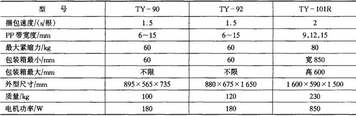 自动捆扎机一般由机架、PP带卷筒、带子进给和张紧结构、接合机标、导轨、传动机构、自动控制系统等组成。包装箱运至拱形导轨下的工作台上,捆扎机开始工作时,PP带穿过导轨绕包装箱一周,带子随即被捆紧结构抽紧,封结器、加热器将其压紧并将带子端头熔接、切断,完成捆扎作业。