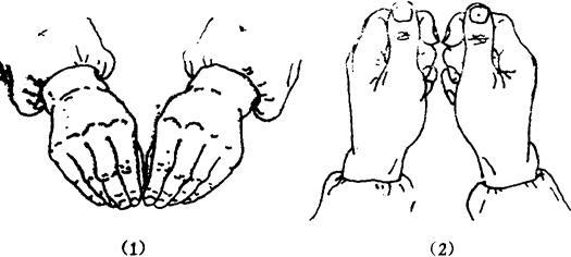 2.食指屈曲,用食指中节桡侧顶住皮肤,拇指前按,两指同时用力提拿皮肤,双手交替捻动向前。