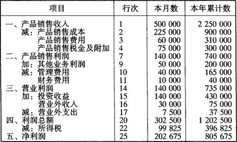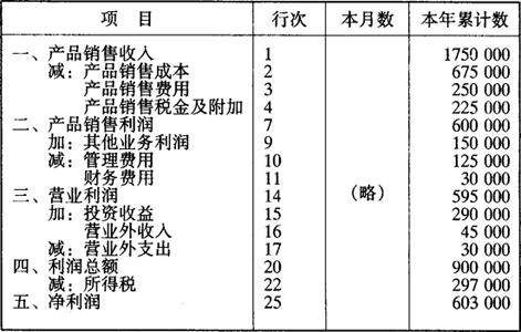 释义 | 损益表如何编制? 按照我国企业损益表的格式内容,其编制方法是:损益表中“本月数”栏反映各项目的本月实际发生数,在编报年度报表时,填列上年全年累计实际发生数,并将“本月数”栏改为“上年数”栏。损益表中的“本年累计数”栏,反映各项目自年初起至本月止的累计实际发生数。 损益表各项目的内容及其填列方法: (1)“产品销售收入”项目,反映企业销售产品的销售收入和提供劳务等主要经营业务取得的收入总额。本项目应根据“产品销售收入”账户发生额分析填列。 (2)“产品销售成本”项目,反映企业销售产品和提供劳务等主要经营业务的实际成本。本项目应根据“产品销售成本”账户发生额分析填列。 (3)“产品销售费用”项目,反映企业在销售产品和提供劳务等主要经营业务过程中所发生的各项销售费用。本项目应根据“产品销售费用”账户发生额分析填列。 (4)“产品销售税金及附加”项目,反映企业销售产品、提供劳务等主营业务应负担的消费税、城市维护建设税、资源税和教育费附加等。本项目应根据“产品销售税金及附加”账户的发生额分析填列。 (5)“其他业务利润”项目,反映企业除销售产品和提供劳务等主营业务以外的其他业务收入扣除其他业务成本、费用、税金后的利润(如为亏损以“-”号填列)。本项目应根据“其他业务收入”和“其他业务支出”账户的发生额分析计算填列。 (6)“管理费用”项目,反映企业发生的管理费用。本项目应根据“管理费用”账户发生额分析填列。 (7)“财务费用”项目,反映企业发生的财务费用。本项目应根据“财务费用”账户的发生额分析填列。 (8)“投资收益”项目,反映企业以各种方式对外投资所取得的收益,其中包括分得的投资利润、债券投资的利息收入、认购股票应得的股利以及收回投资时发生的收益等。本项目应根据“投资收益”账户发生额分析填列。如为投资损失,以“-”号填列。 (9)“营业外收入”和“营业外支出”项目,反映企业经营业务以外的收入和支出。这两个项目分别根据“营业外收入”和“营业外支出”账户发生额分析填列。 (10)“利润总额”项目,反映企业实现的利润。如为亏损,以“-”号填列。 (11)“所得税”项目,反映企业从当年利润中扣除的所得税额。本项目应根据“所得税”账户的发生额分析填列。 (12)“净利润”项目反映企业缴纳所得税后的净利润,如为净亏损以“-”号填列。 【例11-1】 某公司2003年3月份的有关资料如下: 产品销售收入 500000元 产品销售成本 225000元 产品销售税金及附加 75000元 产品销售费用 60000元 管理费用 40000元 财务费用 10000元 投资收益 140000元 营业外收入 30000元 营业外支出 7500元 其他业务利润 50000元 所得税 99825元 该公司2003年2月份的损益表中的有关数据见表11-7。 表11-7 损益表 编制单位: 2003年2月28日 单位:元 根据上述2003年2月份损益表及3月份有关资料,编制2003年3月份损益表,见表11-8。 表11-8 损益表 编制单位: 2003年2月28日 单位:元 |