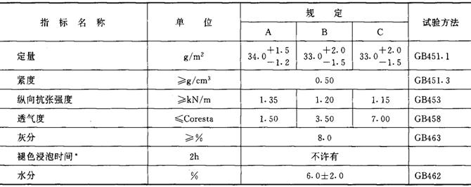 注:*将水松纸纸条长100mm,宽38mm,放在30℃的蒸馏水中浸2h,涂料面同原纸样比较,应无褪色现象。