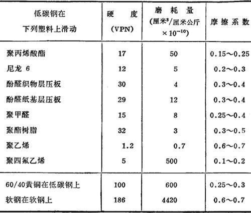 表9-20 起动润滑对热塑性塑料轴承材料耐磨性的影响