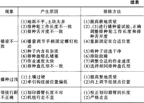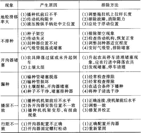 表6-5 播种机常见故障、产生原因和排除方法