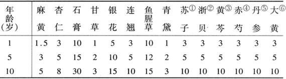 释义 | 支气管肺炎 肺炎为小儿下呼吸道最严重的感染。支气管肺炎因病变累及肺泡而出现啰音。间质性肺炎则出现啰音较晚。临床表现有发热、咳嗽、气促、呼吸困难,肺部有固定的中、细湿啰音,重症常发绀。常见病因有病毒与细菌,前者以中医药治疗为主,后者则需用抗生素等。重症常需中西医联合治疗。 本病属中医“风温犯肺”“喘咳”“肺热喘咳”等范畴。多因风热之邪犯肺,或风寒犯肺化热所致。病之初,由于邪犯肺卫,肺卫失宣,因而出现发热、恶寒、咳嗽、气促等肺卫症状,是为风温犯肺。肺气失宣,郁而发热,灼津成痰,阻于气道,因此发热更高,喘咳更甚,是为肺热喘咳。痰热久郁,蕴而成毒,热毒内传,侵入营血,此时出现面青肢绀、舌绛烦躁,甚至神昏惊厥等症,称痰热闭肺、热入营血。如邪热内陷,邪盛正虚,可导致心阳虚衰(心力衰竭)或阴脱、阳脱(中毒性休克)等危象。若病情迁延,余邪未尽,而脾虚气弱,是为脾虚痰湿之症。 【辨证论治】 (一)风温犯肺 多见于肺炎早期兼有表证。 〔证候〕发热重,恶寒轻,咳嗽,痰白或黄,呼吸急促,口干,咽痛。舌苔薄白或薄黄。脉浮数。指纹浮紫。 〔治法〕辛凉解表,宣肺清热。 〔方药〕银翘散(见第六章上感节)去豆豉加青黛、川芎、生石膏等。 〔按语〕银翘散疏散风热,清热解毒,具有外散风热、内清热毒之力。其方解见第六章上感节。渴甚者加天花粉生津止渴;咽痛者加玄参、马勃利咽消肿;咳明显者加杏仁苦降肃肺;小便短、热伤津者加知母、黄芩、栀子、麦冬、生地以清热生津。 (二)肺热喘咳 多见于一般急性肺炎。 〔证候〕发热高,咳嗽重,气促喘满,喉内痰鸣,口渴,烦躁,面红,小便短赤,汗出或无汗。舌质红,苔薄黄或干黄厚。脉数或滑数。指纹紫。 〔治法〕辛凉清热,宣肺平喘。 〔方药〕麻黄杏仁甘草石膏汤(麻杏石甘汤)加味。 【歌诀】 麻杏石甘汤,肺热咳喘方。 〔按语〕本方为原方加银、翘、鱼、青而组成。方中麻黄是主药,用以发散表寒,宣肺平喘。据研究,对发热患者麻黄发汗力强,蜜炙麻黄发汗作用力稍弱,但宣肺平喘效佳。麻黄所含麻黄碱能缓解支气管痉挛,故可平喘。另外,麻黄挥发油对流感病毒有抑制作用。方中杏仁降气润肺止咳,可助麻黄平喘;生甘草清肺气,利咽喉;重用生石膏可清泻肺热;石膏与麻黄配伍,前者清肺为主,后者宣肺为要,故有学者认为,两者共为本方之主药。方中麻黄与生石膏用量的比例很重要,因麻黄为辛温大热药,用于肺实热证必须与生石膏配伍成1∶3或1∶5,甚至1∶5以上,才能成为具有辛凉解表兼清里热的辛凉重剂(银翘散为辛凉平剂,桑菊饮为辛凉轻剂)。临床应用时,可根据患者表证与内热轻重、季节及有无汗出而适当调整麻黄与石膏的比例,如严冬用药、体温不太高或无汗而喘,麻黄与石膏的比例可调整为1∶3左右。麻杏石甘汤全方据现代药理研究表明,具有镇咳祛痰、解热、平喘、抗菌(如金黄色葡萄球菌、肺炎链球菌、肺炎克雷伯菌等)、抗病毒(如流感病毒)、抗变态反应及增强机体免疫功能等作用。方中加用银、翘、鱼、青以加强清热、解毒、抑菌的作用。喘咳重者加用①、②;高热不退者加用③或重用生石膏;发绀者加④、⑤以行瘀活血;高热便秘者加⑥。若痰多气急可加葶苈子、桑白皮或枇杷叶以祛痰行水、肃降肺气。 (三)痰热闭肺,热入营血 常见于重症肺炎。 〔证候〕高热不退,喘满严重,气促,鼻翼扇动明显,喉中痰鸣,烦躁不安,唇周发绀,口唇干裂,重者面青肢凉,或有神昏、谵语、惊厥等。舌绛,少苔或苔黄厚腻。脉滑数或细数无力。指纹紫滞。 〔治法〕清营解毒,平喘化痰。 〔方药〕清营汤(见第四章“乙脑”节)加青黛、栀子、葶苈子、苏子。 〔按语〕清营汤清营分血分热,其方解见第四章“乙脑”节。加青、栀以加强清热解毒;苏子降气平喘;葶苈泻肺定喘。高热惊厥者,可加紫雪丹(用法用量见第十二章惊厥节)。 (四)肺热喘咳,心气虚衰 多见于肺炎合并心力衰竭。 〔证候〕发热不退,咳嗽气喘,烦躁不安,呼吸急促,动则喘甚、发绀,肝脏大,或大汗淋漓,四肢发冷。舌质暗红,苔黄。脉数而细弱。指纹紫滞或达气关以上。 〔治法〕清热宣肺,益气养心。 〔方药一〕麻杏石甘汤(见本节)加生脉散(见第十一章休克节)。 〔按语〕麻杏石甘汤辛凉宣肺、清热定喘;生脉散益气养阴。其方解见本节及第十一章休克节。 〔方药二〕独参汤(见第十一章休克节)。 〔按语〕独参汤用单味人参,独用力专,剂量较大(见第十一章休克节)。对病情危重者,应先浓煎频服,待病情好转,可改用方药一。 (五)邪热内陷,内闭外脱 常见于肺炎合并休克。 对本型患儿先按小儿感染性休克进行辨证论治(见第十一章休克节);病情好转则按本节肺炎辨证论治;并依病情酌加人参或党参。 (六)余热未清 多见于肺炎恢复期。 〔证候〕仍有低热,口渴,食欲不振,咳嗽有痰,精神差。舌质红,少苔或无苔。脉细数无力。指纹淡紫。 〔治法〕养阴清肺,生津润燥。 〔方药〕沙参麦冬汤(见第四章麻疹节)。 〔按语〕沙参麦冬汤清养肺胃,生津润燥,是清养肺胃之代表方。其方解见第四章麻疹节。如久热者加地骨皮、生地;咳甚者加贝母、杏仁;大便燥结者加全瓜蒌、火麻仁;口渴甚者可加梨汁兑服。 (七)脾虚痰湿 常见于迁延性肺炎、慢性肺炎或营养不良合并肺炎。 〔证候〕病情迁延,咳嗽痰多,或