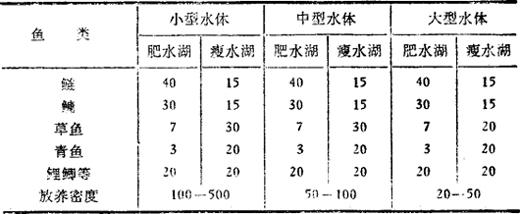表2-123 大水面放养鱼种参考表(尾/亩)
