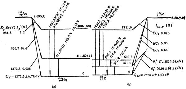 释义 | 放射性衰变的种类和特征 放射性衰变(decay)是指某一特定能态的核素从该能态上的自发核跃迁。这种跃迁总是以发射粒子(射线)的形式释放出能量。衰变前后的核分别称为母核(或母体)和子核(或子体) 1.α-衰变。放射性核素(的原子核)自发发射出一个α-粒子转变成另一个核素的过程称为α-衰变,它的变化式是 2.β-衰变。β衰变有三种形式。第一种形式是 3.γ-射线。放射性核素经β-或α-衰变后,不一定进入终(子)核的基态,在多数情况下是进入激发态,然后以发射光子的方式退激到基态。这一过程发射的光子称为γ-射线。由于衰变后进入激发态的能级不同,发射的γ-射线能量也不同。在β-衰变情况下,有时由激发态经过另一个(或一个以上)较低能级才退到基态,这时每次衰变就伴随有两个(或两个以上)的γ-射线。后两种情况都造成衰变伴随的γ-射线能谱有相应的几组能量。 4.内转换电子及俄歇(Auger)电子。放射性衰变后处于激发态的子核素,除以发射γ-射线的形式释放出能量外,还有另一种释放出能量的形式,即将能量传给原子内层轨道电子,这一过程称为内转换,由此过程发射出的电子称为内转换电子。和电子俘获过程一样,原子的内层轨道电子的空位由外层电子补充而发射出特征X-射线。俄歇电子和内转换电子很相似,差别在于是原子的激发能量直接传给原子的外层轨道释放出来的电子。 5.同质异能态。放射性衰变后处于激发态的子核有时不是立即而是处于一种亚稳态,经过相当一段时间才跃迁到它的基态,因此它也存在着明显的放射性。这种由激发态的子核经延迟退激到较低能态的同一核素的跃迁,称为同质异能跃迁。处于不同能态的同一种核素称为同质异能素或同质异能核素。这种处于亚稳态的子核核素常常在其符号的原子质量数后面加一英文字母m,例如99Mo衰变至处于0.143MeV能级的亚稳态的99Te,它可存在数小时,记为99mTC,在同质异能素衰变为放射性子体的情况下,有时也用g表示其子体的基态,例如,81gKr是81mKr的放射性子体。 6.衰变纲图。放射性核素的衰变方式常用衰变纲图来表示,以下仅举两个核素的衰变纲图为例说明(图10.2-1) 图10.2-1 放射性核表衰变纲图 图中(a)呈 7.放射性衰变系,有些原子核衰变后的子核不是稳定核素,它的子体,甚至子体的子体也是不稳定核素,这样就产生一代一代的连续衰变,直至最后一代为稳定的核素为止。这种几代同时长期存在的放射性核素称为放射性衰变系。显然,第一代母体的半衰期(见10.2.2节)必须较长,否则它就不可能与其后的子体共存。人们在发现放射性以后不久便知道了自然界中存在的三个放射性衰变系,即钍系、铀系和锕系,后来又发现了用人工产生的放射性衰变系镎系,由于它的半衰期比地球的寿命短得多,所以在地球中已不复存在。钍系第一代成员为232Th,半衰期为1.4×104年,由于它及各代子体的原子量均为4的倍数,所以称为4n系。镎系第一代成员为 【参考文献】: [1]ICRU,Radiation quantities and units,ICRU,Report 33(1980). [2]ICRU,Neutron dosimetry for biology and medicine.ICRU,Report 26(1977) [3]ICRU. Determination of dose equivalents resulting from external radiation sources, Report 39 (1985). [4]ICRU,Determination of dose equivalents resulting from external radiation sources,Part 2,Report 43(1988). [5]Quantities and units in radiation protection dosimetry. ICRU,Report 51(1993). [6]ICRP.1990 Recommendations of the ICRP Publication 60(1991). [7]ISO—8529, Neutron reference radiation for calibrating neutron measuring devices used for radiation protection purpose and for determining their response as a function of neutron energy. [8]IEC—1005,Portable neutron ambient dose equivalent ratemeter for use in radiation protection (1990). [9]IAEA,Guideline on calibration of neutron measuring devices, IAEA Technical Reports Series No. 285(1988). [10]卢希庭,原子核物理,原子能出版社,1981。 [11]梅镇岳,原子核物理学,科学出版社,1961。 [12]Mann,W. B. ,A handbook of radioactivity measurements procedures,NCRP Report 58(1985). [13]Johnson C. H. ,Fast Neutron Physics,Part I,Interscience Publisher (1960). [14]Knoll,G. F. , Radiation Detection and Veasurement, 2nd Ed.,John Wiley & Sons(1989). [15]Attix,F.H. , Tochlin, E. , Radiation Dosimetry. Vol.1-4,Academic Press ,New York(1968). |