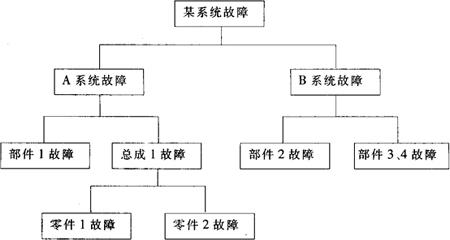 植保机械某系统故障,可能是A系统故障或B系统故障造成的,而A系统故障又可能是部件1或总成1发生失效引起的,B系统故障可能是部件2或部件3与4出现故障造成的;而总成1发生故障可能是零件1或零件2的故障引起的。故障树能清晰地揭示出系统故障的内在联系,从而发现系统中的薄弱环节与潜在问题。