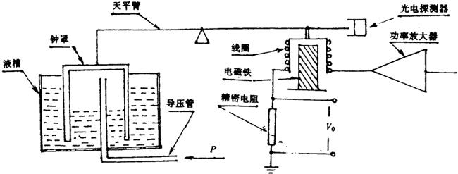 释义 | 数字式压力计 数字压力计是利用压力传感器作压力转换元件,直接显示压力值的压力计。它既可以以数字直接显示被测压力,又可以输出模拟电信号供数据采集系统采集处理。 大部分压力传感器只输出模拟电量(电压、电流),需经采样,模一数(A/D)转换,变成数字量,直接显示压力大小,特点是无污染,无需各项修正和判读误差,特别是在自动控制系统中得到广泛应用。它的精确度和稳定性取决于压力传感器的静态特性。目前,市场上的数字压力计种类繁多,它们的主要区别是所用感压元件不同。我国由于压力传感器技术比较落后,生产的数字压力计一般准确度较低,长期稳定性也较差。国外数字压力计生产厂家生产的数字压力计,一般采用石英晶体压力传感器、振动筒压力传感器和石英波登管压力传感器作为感压元件,由于传感器性能较好,因此,数字压力计的准确度较高。尽管如此,由于传感器的长期稳定性较差,国外厂家给出的准确度一般都是在90天或180内的,要保证其准确度,需要每年校准几次。这对于没有上一级标准的用户来说,是很不方便的。 值得一提的是精密天平式数字压力计,这种压力计溶数字压力计的使用方便和活塞压力计的可靠于一身,能通过随仪器带的标准砝码作自校准,以保证仪器的准确度。因此,精密天平式数字压力计具备作为压力标准的条件。其原理图见图4.8-14。它主要由弹性元件、天平臂、光电探测器和补偿线圈等组成。 图4.8-14 数字压力计原理示意图 天平臂的一端与弹性元件相连并备有自校准时所需的砝码挂环,另一端与一线圈相连,线圈位于永久磁铁产生的磁场中。天平的平衡位置由位于天平臂端的光电探测器测量 当没有压力作用在弹性元件时,天平处于平衡位置,这时,光电探测器输出信号为零。当有压力作用在弹性元件时,天平失去平衡,光电探测器将有信号输出。 当被测压力导人有效面积已知的弹性元件后,压力将被转变为力并作用在天平臂上,使天平失去平衡,光电探测到天平失衡后,将有电信号输出,该信号驱动伺服放大器向天平臂上的线圈通电,由于电流在线圈中流动而产生磁场,这个磁场与永久磁场相互作用产生的力矩与被测压力在天平另一端产生的矩大小相等,方向相反,使天平保持平衡,司服放大器供给线圈的电流,这一电流正比于导入弹性元件的压力,测准这一电流值就相当于测出压力值。 把上述电流通过精密电阻,产生与系统所受压力成正比的电压,经A/D转换,供计算机处理。 由于在传感器结构上采取了独特的天平结构,因此,可以用标准砝码来对整个系统进行校准,这减少了用户到标准实验室的检定次数,大大方便了用户,也保证了仪器的可靠性。 我国的数字压力计生产厂迅速发展着,但大量生产的是±0.05%以下的,逐渐代替了气压计、微压计、活塞压力计以及大量使用着的弹性式压力计。 【参考文献】: [1]师克宽等,过程参数检测,中国计量出版社,1990。 [2]王江,现代计量测试技术,中国计量出版社,1990。 [3]鲁绍曾,现代计量学概论,中国计量出版社,1987。 [4]赵琪 原遵东等,用于ITS-90的直流光电温度比较仪,计量学报(1990),Vo1,11,No.4,P.241。 [5]H.Preston-Thomas,The International Temperature Scale of 1990,CCT BIPM,1990 [6]蒋思敬、姚土春编,压力研究。 [7]M·K,若霍夫斯基着,李燕、黄国政等译,压力和疏空计量技术。 [8]Supplementary Information for the International Temperature Scale of 1990,CCTBIPM,1990。 [9]Techniques for Approximating The International Temperature Scale of 1990,CCT BIPM,1990。 [10]王魁汉,温度测量技术,东北工学院出版社,1991。 [11]沈正宇、王凤诚,从计量保证方案(MAP)谈一等标准水银温度计的检定质量,第二届全国温度测量与控制学术会议论文集,P340-345,1990。 [12]压力计量名词术语及定义,JJG,1008-87。 [13]知久明、金田良作等合编,房景富、韩慧文、袁先富译,压力测试仪器的管理。 [14]许第昌编,压力计量测试。 [15]蔡武昌等编,流量测理方法和仪表选用指南。 [16]川田裕郎等编着,流量测量手册。 [17]苏彦勋、盛健、梁国伟编着,流量计量与测试。 |