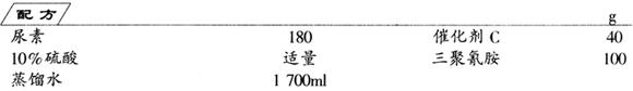 在500ml三颈烧瓶中投加180g尿素、40g催化剂C,开动搅拌并升温加热,待反应放出氨气后用吸收瓶吸收,经2h后将温度升至250~260℃,即停止搅拌,260~270℃恒温0.5h。冷却后再加入适量10%的硫酸水溶液,继续加热使其水解,待物料松散后,开始搅拌,加热回流4h,降温过滤,进行水洗,于120℃下烘干1h即可得到氰尿酸。