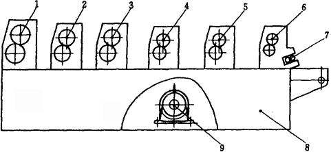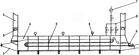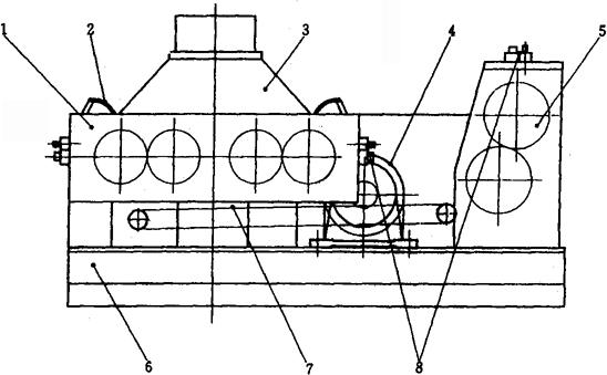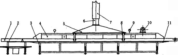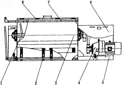 释义 | 方便面加工装备 1 概述 方便面是以面粉为主要原料,经和面、熟化、复合压延、切条折花得到生面条,经过温度为95℃左右的蒸面机,使其充分糊化,然后用油炸或热风干燥脱水,经冷却后包装而得到的产品。 方便面于1958年由日本日清公司首创生产,现在已发展为销售量最大的方便食品。我国从80年代初开始引进成套设备进行生产,并迅速将设备消化、吸收,使之国产化。方便面在我国得到了迅速发展,其产量以每年15%左右的速度增长,方便面加工装备也在不断的发展、创新中得到迅速提高。 方便面按加工工艺可分为油炸型和热风干燥型两大类;按面型可分为方形面和圆形面两类。目前,方便面正朝着两个方向发展:一是采用新工艺、新设备取代油炸干燥,且使产品具有与油炸产品同样的内部结构,从而达到复水性良好的效果;二是根据不同需要,对方便面添加不同的营养成分,并逐步探讨生产添加玉米面、荞麦面、绿豆面、大豆粉或其他的谷物、豆类的方便面,以适应各种风味、口感及营养需求。 目前,方便面加工装备主要规格如表1-9-1所示。 表1-9-1 方便面加工装备一览表 2 加工工艺 方便面生产工艺流程如图1-9-1所示。 图1-9-1 方便面生产工艺流程图 2.1 和面 和面的基本原理是在和面机中加入面粉,并注入适量的水和添加剂,通过一定时间的适当强度的搅拌,小麦面粉中的麦胶蛋白和麦谷蛋白逐渐吸水膨胀,相互粘结而形成面筋网络结构。同时,淀粉颗粒也吸水膨胀,并被湿面筋网络所包围,从而使面粉变成具有可塑性、延伸性和粘弹性的湿面团。和面加水量在不影响后续工艺的前提下尽量多一些,一般为33%左右,和面时间一般在15~20min,搅拌轴转速一般在80r/min左右。 2.2 熟化 由于和面时间比较短,各种颗粒吸水的程度还不充分,所形成的面筋网络结构比较松散,粘弹性差;同时,面筋网络在和面时受到挤压和拉伸,结构不稳,易变形。熟化的目的是为了进一步改善面团的加工性能,提高产品的质量。熟化时间一般为15min。并且熟化时不得有机械温升。 2.3 复合压延 经过熟化后的颗粒状面团,已开始形成面筋,但却很松散,只有对其施加压力,才能使其形成面片,把分散在面团中的面筋和淀粉粒子集结起来。复合后面带的厚度一般为3~6mm。经复合压片后的面片,还要经过多道轧辊的滚压,才能最终将疏松的面筋压展为细密的网络组织,并在面片中均匀分布,并把淀粉颗粒包围起来。这样,才能把面团的可塑性、粘弹性和延伸性体现出来。经过压延后的面带厚度一般为0.8~1mm。 2.4 切条成形 经过压延后的面片进入相互啮合的面刀,在其凹凸槽的切削下就形成为纵向面条,再使其进入特殊设计的截面形状为扁长方形的成型器,就成为波峰竖起、前后波峰相靠的波浪形面层。切条成形的要求是:面条光滑,波纹整齐,密度适当,分行相等,行行之间不交联。 2.5 蒸面 蒸面是使波纹面层在一定温度下适当加热,在一定时间内使生面条中的淀粉糊化,蛋白质产生热变性。糊化是把β化状态的淀粉变成α化状态的淀粉。糊化后的淀粉还会逆转,因此,要使产品不回生,保证其具有良好的复水性,首先就要尽量提高蒸煮时的糊化率,然后迅速脱水使糊化后的淀粉结构固定下来。蒸面温度一般为95~100℃,蒸面时间一般为90~100s。 2.6 定量切断 定量切断是为了便于油炸、包装。蒸煮后的面条经切刀以长度定量切断后折叠为两层,最后分排输出。定量切断的工艺要求是定量准确,折叠整齐。面块的尺寸规格为125mm×100mm×25mm。 2.7 脱水干燥 脱水干燥是迅速固定糊化后的淀粉,降低方便面的老化速度,保持方便面的复水性,降低水分含量以便于储存。 脱水干燥通常采用油炸干燥和热风干燥两种方式。油炸干燥是把定量切断的面块自动放入油炸机的链盒中,使之连续通过高温的油槽,面块被高温的油包围起来,本身温度迅速上升,其中所含水分迅速汽化,达到干燥目的。油炸温度一般控制在140~155℃,油炸时间一般为70~120s。热风干燥是使面块连续通过一隧道,利用热空气加热,使水分汽化,并不断排出水汽,达到干燥的目的。热风干燥的温度一般为70~85℃,干燥时间为45min。 2.8 冷却 由干燥机来的高温面块通过传动网带进入冷却机隧道,利用冷空气与面块的温度差,使面块温度迅速降低,使面块温度降到室温左右,然后被送往下一道工序。冷却时间至少要在3min以上。 3 关键设备 3.1 和面机(图1-9-2) 图1-9-2 和面机结构简图 1-搅拌轴 2-开、关门机构 3-和面桶 4-传动机构 5-电机底座 6-机罩 7-进水管 8-筒盖 和面机是方便面生产中最重要的设备之一,它用来进行和面操作。 双轴和面机是在2根轴上安装螺旋线齿杆,并相向交替式的两边-向下-中间-向上的连续搅拌,轴的两端面通过2对螺旋型叶片不断地翻滚物料,使面粉不断沿轴向也作循环流动,使物料和水在转动的搅拌过程中作对流和扩散运动,物料在机内翻滚、混合,初步形成面团。 3.2 喂料机(图1-9-3) 图1-9-3 喂料机结构简图 1-筒体 2-喂料杆 3-动力装置 4-闸板 喂料机是用来完成面团的熟化工艺的,借助时间的推移,改善面团的加工性能。 该机工作时,利用立式倒置的减速电机直接带动喂料杆转动,当面团移到落料口时,自动落入复合机的接料斗中,完成喂料工序。筒体的容量比较大,面团在筒中的滞留时间一般都超过10min。喂料杆的转速慢,确保没有机械温升。 3.3 复合压片机(图1-9-4) 