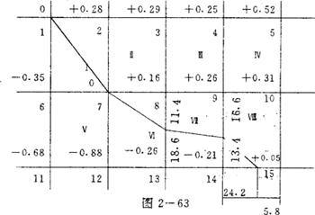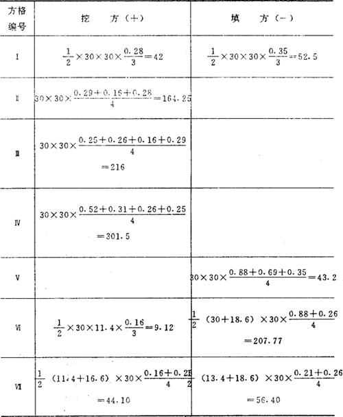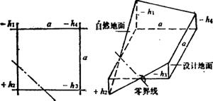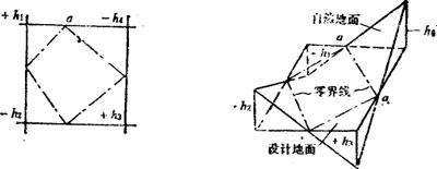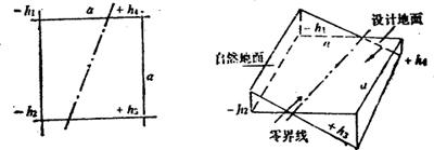 释义 | 方格网计算法 在一个方格网内同时有挖土和填土时(挖土地段冠以“+”号,填土地段冠以“-”号),应求出零点(即不填不挖点),零点相连就是划分挖土和填土的零线(见图2-57)。计算零点可采用以下公式: 图2-57 式中 x-施工标高至零界点的距离; h1、h4-挖土和填土的施工标高; a-方格网的每边长度。 方格网内的土方工程量计算,有下列几个公式:①四点均为填土或挖土(见图2-58) 图2-58 式中 ±V-为填土或挖土的工程量(m3); h1、h2、h3、h4-施工标高(m); a-方格网的每边长度(m)。 ②二点为挖土和二点填土(见图2-59) 图2-59 公式为: ③三点挖土和一点填土或三点填土一点挖土(见图2-60) 图2-60 ④二点挖土和二点填土成对角形(见图2-61) 图2-61 中间一块即四周为零界线,就不挖不填,所以只要计算四个三角锥体,公式为: 以上土方工程量计算公式,是假设在自然地面和设计地面都是平面的条件,但自然地面很少符合实际情况的,因此计算出来的土方工程量会有误差,为了提高计算的精确度,应检查一下计算的精确程度,用K值表示: 上式即方格网的二对角点的施工标高总和的比例。当K=0.75-1.35时,计算精确度为5%;K=0.80-1.20时,计算精确度为3%。一般土方工程量计算的精确度为5%。 〔计算例〕 某建设工程场地大型土方方格网图(见图2-62)。 图2-62 a=30米,括号内为设计标高,无括号为地面实测标高,单位均为米。 a.求施工标高: 施工高程=地面实测标高-设计标高(见图2-63) 图2-63 b.求零线: 先求零点,图中已知1和7为零点,尚需求8-13;9-14,14-15线上的零点,如8-13线上的零点为 另一段为 d-x=30-11.4=18.6 求出零点后,连接各零点即为零线,图上折线为零线以上为挖方区,以下为填方区。 c.求土方量:计算见表2-24。 表2-42 |