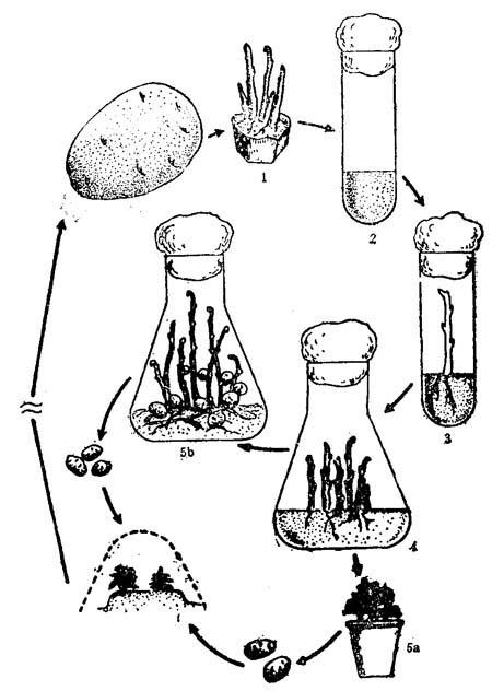 释义 | 方法 在阐明分生组织、茎尖和芽培养的全部程序时,拟提供草本植物(马铃薯)的分生组织和木本植物茎尖培养方法。由于不同植物种,同一植物种的不同发育时期以及同一植物不同部位似乎有不同的培养要求,读者可参考下节为了改进其他实验植物材料茎尖培养程序的影响成功培养的不同因素。 (一)草本植物——马铃薯的分生组织培养(图4-1) 图4-1 用分生组织培养生产无病毒马铃薯的图解 1.外植体来源 2.初始培养的分生组织外植体 3.外植体生长 4.腋生枝增殖 5a.移植 5b.块茎形成 1.获得植物材料 ①把块茎切成20g重的切块。 ②切块浸入0.03mM GA溶液1h,以打破芽的休眠。 ③切块在培养室无菌潮湿的蛭石里发芽。 ④当芽长至3—5cm长时,切取茎尖。 2.材料表面不需消毒 3.分割 ①在15—20倍解剖镜下观察,为由薄片组成的帽状结构。 ②分割具有叶原基的半球形分生组织(大约75μM)。 4.阶段I起始培养 ①各个分生组织外植体转移到附加1g/l Bactotryptone的MS固体培养基上,培养管为15×19mm。 ②在25℃、12h光周期下培养,第一个月光照强度150lx,第二个月500lx,光源是由白色荧光灯和白炽灯的混合光。 ③二个月再生了3cm高的生根小植株。 5.阶段Ⅱ在试管内压条生根繁殖 ①再生小苗平放在附加0.005μM NAA的MS固体培养表面,培养瓶为250ml。 ②在20天内逐渐长出2—3个腋生枝和不定根。 ③把新近长出的腋生枝按压在琼脂表面呈水平状态。 ④20天为一个周期,这样反复进行,直到形成大量腋生枝为止。 ⑤用无菌手术剪分割腋生枝,并转移至新的培养基上再培养。 ⑥20天为一个周期,又这样反复进行分割,再培养。具有2—3倍的增殖能力. 6.离体培养中块茎的形成 ①切割的腋生枝转移到含有22.0—44.0μM BA和0.23M蔗糖的MS培养基上,用300或500ml的培养瓶。 ②培养温度18—20℃,8h光照,强度100—500lx。 ③四个月的时间,从一个500ml的培养瓶里能获得30—50个休眠小块茎。 (二)木本植物——美洲擦木茎尖培养(图4-2) 图4-2 美洲擦木苗尖培养图解 1.5—6龄野外生长树木芽外植体 2.初级培养 3.腋生枝增殖 4.在液体培养基中长根,滤纸桥系统 5.长根幼苗 6.移植 1.获得外植体 ①在早期有叶小枝中,用抗生素和内吸性杀真菌剂混合物(链霉素0.1%+Benlate0.1%)处理5年生树的带芽小枝条一个星期。 ②取一周后的第四小枝新近发芽枝条(约5cm长)。 ③分割8—10mm长,具半球形生长点和十七个包紧的叶原基的茎尖。 2.表面消毒 ①浸入75%的酒精中2—3s。 ②用无菌蒸馏水冲洗一次。 ③浸在0.5%NaClO3和0.01%吐温20混合溶液中,超声振动5min。 3.阶段I——起始培养 茎尖转移到修改的LS固体培养基上,该培养基具有二倍的FeEDTA和以下附加物:0.15M蔗糖、3%CW、100mg/l麦芽汁,0.22mM ADE硫酸盐、0.34mM谷酰胺、0.3mM精氨酸、0.27μ.M NAA和0.28mM KIN。 4.阶段Ⅱ——腋生枝的增殖 ①芽丛转到培养基成分相同的新配制的培养基上培养,培养瓶250rnl。 ②每月一次,重复进行培养。 ③为了促进枝条生长,将芽丛转移至培养基成分相同的新鲜培养基上培养,只是培养基中KIN的量减少到23.0μM。 5.阶段Ⅲ——长根 ①将1cm长的枝条转移到补充有25.0μM IBA的LS液体培养基的试管内,漏纸法培养。 ②在15—45天内偶尔产生一些根(20%)。 6.移植 ①把长根幼小植株移入装有蛭石的盘中,用透明塑料膜覆盖。 ②放在白天25℃和晚上15℃的12h4k lx白色荧光下培养。 ③在移植后一个月移栽大田,成活率达95%。 【参考文献】: 〔1〕Andesson,W.C.1980 Mass propagation by tissue culture: prineiples and practics.In: Preceedings Conference on Nursery Production of Fruit Plants Through Tissue Culture-Applications and Feasibility SEA,Agri.Res.Results,N.E.Series No.11,pp.1-1 USDA Beltsville. 〔2〕Kartha,K.K.1981 Meristem culture and cryopreservation-methods and application In: Plant Tissue Culture(T.A.Thorpe ed.)pp.181-211. 〔3〕Murashige,T.1974 Plant propagation through tissue cultures.Annu.Rev.Plant physiol.25∶135-166. 〔4〕Wang,P.J and Hu,C.Y.1980 Regeneration of virus-free plants through in vitro culture.In: Adyances in Biochemieal Enginn ering,Vol.18,Plant Cell Cultures I(A.Fiechter, edpp.61-99.Springer-verlag,Berlin,Heidelberg,New York. |