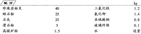释义 | 无公害保温材料 制法 将200目以上的珍珠岩粉末和蛭石粉、玻璃纤维按配比混合,加入适量的水搅拌。然后加入石灰、滑石粉、三氯化铁,搅拌均匀后加入高镁矿粉、氯化钾、亚硫酸钠,搅拌均匀,并调pH值至7.0~7.6之间,即制成保温材料。 本品糊状时可作保温涂料使用,使用温度在0~80℃之间。也可制成所需的一定的几何形状,干燥后就是固体保温材料,保温温度在不超过1000℃时,效果显着。 |