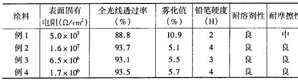 从上表可以看出,涂布本涂料的涂层电阻低、透明性好、硬度高、耐磨性好。