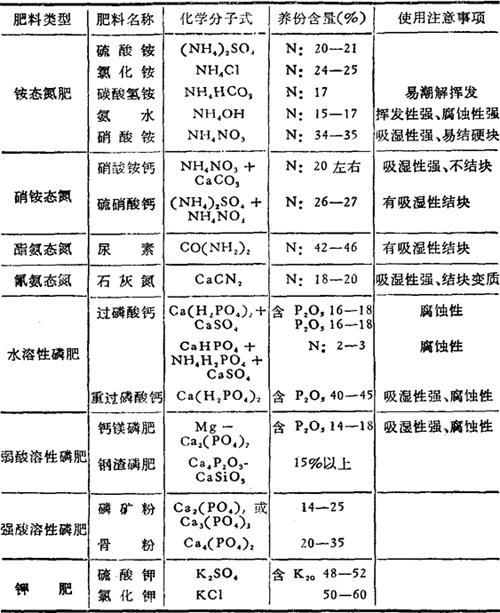 现将市售氮、磷肥的种类和肥份列表3-53。
