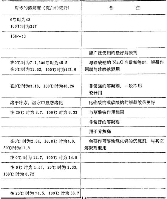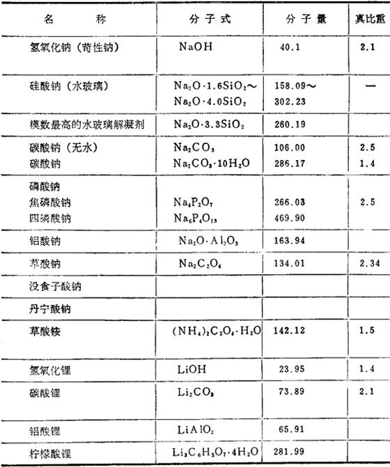 无机解凝剂的种类与性质