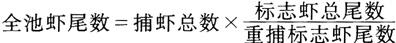 释义 | 日常观测 日常观测是虾池管理的重要内容,是全面把握养殖水体及对虾现状的重要手段,是决定养成各项技术措施的重要信息依据。日常观测的主要内容有: (一)水环境因子监测 监测内容包括海水温度、盐度、pH、溶解氧、氨氮、化学耗氧量(COD)、有毒重金属离子浓度、水色、透明度、赤潮生物量、底色变化、海水内异养细菌数、弧菌数、基础饵料生物组成及密度等。其中短期效应较大的如水温、溶解氧、pH、氨氮、水色、透明度、异养细菌等以每天监测为好。其他因子需定期测定。 对虾诸种类养成期水质指标的一般要求,除了水温、盐度等各有不同的范围外,其他略有相似,如:pH7.6~8.6;铵态氮(以 (二)对虾生长情况的测定 对虾的生长情况不仅反映着养殖措施是否正确,而且也是确定投饵质量和数量的依据,最少每10天测量一次,每次随机抽样50~100尾测量,应在池中分几处取样,可以用旋网捕捞。测定工作以早晨和上午较好,夏季应避开炎热的中午。 对虾的生物学体长系指自眼柄基部至尾节末端的长度。体重不需逐一称量,可做一个密网袋挂于船旁水中,将各点取得的样品放在一起,最后挖干称重,以求出平均体重。 中国对虾在当前的养殖条件下,前期8厘米以前每10天生长1~1.5厘米,中期为0.8~1厘米,后期为0.5厘米以上,若低于上述指标,应分析原因,改进管理措施。 (三)对虾活动情况的观察 在正常情况下,对虾静息池底或游动觅食。体表光洁,颜色鲜亮,反应敏捷。如发现在集中摄食的时间里仍长时间环池游动,则说明饵料不足;在没受惊扰的情况下频频跳动,可能有害鱼追逐,或氧气不足,或体附寄生物;若出现全池跳虾,则表明水情有变,水质不良;当对虾虾体纤弱,活动力弱,体色变深(黑褐色),甚至体壳附着杂藻,肠道粗而弯曲,则因水老、饵缺、蜕皮困难所致。 在养成的中后期,由于对虾密度过大,残饵及排泄物的大量积累以及换水不足,常常发生对虾缺氧浮头现象,浮头时,对虾分散游动,方向不定,游动缓慢无力,时而眼睛、触角露出水面,呈鱼蹀水状以吸取水表氧气。其时受到刺激,也不起水跳跃。根据对虾在水面的状况,可分明浮头(眼睛、触角露出水面)和暗浮头(虾体浮起,但眼睛和触角未露出水面)两种状态。对虾浮头多发生在高温期闷热无风的天气,一般在黎明前出现,日出后基本消失。若半夜发生或日出后继续浮头,表明虾池缺氧情况已相当严重。对虾浮头前可能出现的征兆是:天气闷热,池水平静,或大风过后,晚上突然止风,池水溶解氧降到1.5毫克/升左右,虾群出现异常活动;原生动物大量繁殖,池水透明度增大到1米以上;浮游植物过量繁殖,透明度小于20厘米;池底黑区扩大,且有臭味逸出;入暮后虾池周围出现大量蚊虫;海鸥池上空盘旋,集聚;糠虾、鱼类聚向池边或产生浮头;轮虫、夜光虫等大量繁殖使池水呈现微红等。当发现浮头征兆,即应继续周密观察,采取如下急救措施:立即停饵或减饵;迅速换水、充气、增氧,紧急时可以氧气瓶或化学增氧剂(如双氧水1毫克/升)处理;要保护池底,切勿搅起池底污泥。 (四)胃饱满度的测定 取一定量的对虾,从头部背面透过甲壳观察胃饱满度。根据虾胃中食物的多少,可分为饱、半饱、残、空四级,具体分法为:饱胃,胃腔内充满食物,胃壁略有膨胀;半饱,胃含物占胃腔的1/2以上,或占据全胃,但胃壁不膨胀;残胃,胃含物不足胃腔的1/4;空胃,胃腔内无食物。一般在投饵后1小时左右,饱胃(包括半饱)率在80%以上,投饵之前饱胃率在20%左右,则投饵适宜。若投饵后1小时饱胃率低于60%,则饵料不足;若投饵前超过40%,则投饵过量。胃多不饱而饵料剩余,则饵料质量差或已变质,对虾拒食之;胃饱满但对虾生长缓慢,则饵料营养不全或不易消化。“黑胃”或“绿胃”多因缺饵而误食污泥或不消化的植物。要结合胃含物分析,随时进行饵料调整。 (五)池塘中虾数的估计 准确地估计池内对虾尾数,是合理投饵、准确估产的重要依据。由于对虾有游动和集群的习性,不易一次测准,应多种方法配合,多次测定和分析。目前常采用的方法有: 1.罾网测定法 此法适合测定2~3厘米的小虾。即在池内以已知面积的小罾(抬)网多点抬虾,求出单位面积的对虾数,从而求出全池对虾数。 2.旋网定量法 此法适于中国对虾等白天活动的虾类,且体长6厘米以上的对虾群体。即根据池形及沟、滩面积之比,在池内多点取样。利用如下公式,求出池内对虾数。 式中 K——网口收缩系数,其值随水深而增大。 3.拖网定量法 此法适用于潜砂的虾类。如日本有人用桁拖网定量日本对虾。沿池底拖过后潜砂的对虾纷纷入网,然后按拖过的面积和入网虾数计算全池虾数量。 4.标志法 养殖后期可做一次标志法计数。根据池塘大小,在不同位置捕取500~1000尾对虾,剪去一侧尾肢,放回原池,1~2天后再用网在该池不同部位捕虾,使重捕剪尾虾的数目至少达总剪尾虾数的1/10,最后以下式计算: 5.饵料反推法 根据对虾实际摄食情况进行反推算。即按照初估虾数准确投入一定量饵料,再观察对虾实际摄食状况(胃饱满度和剩饵状况),进行数次调整后,以较合理的日投饵量反推对虾尾数。 6.经验成活率推算法 首先测准入池虾尾数,再参考清池效果、虾苗质量和规格、有无浮头、虾病、虾逃等异常情况,主要根据投苗后不同生长时期对虾的经验成活率,计算对虾的存池数,以此做为估计对虾各生长阶段存池数的主